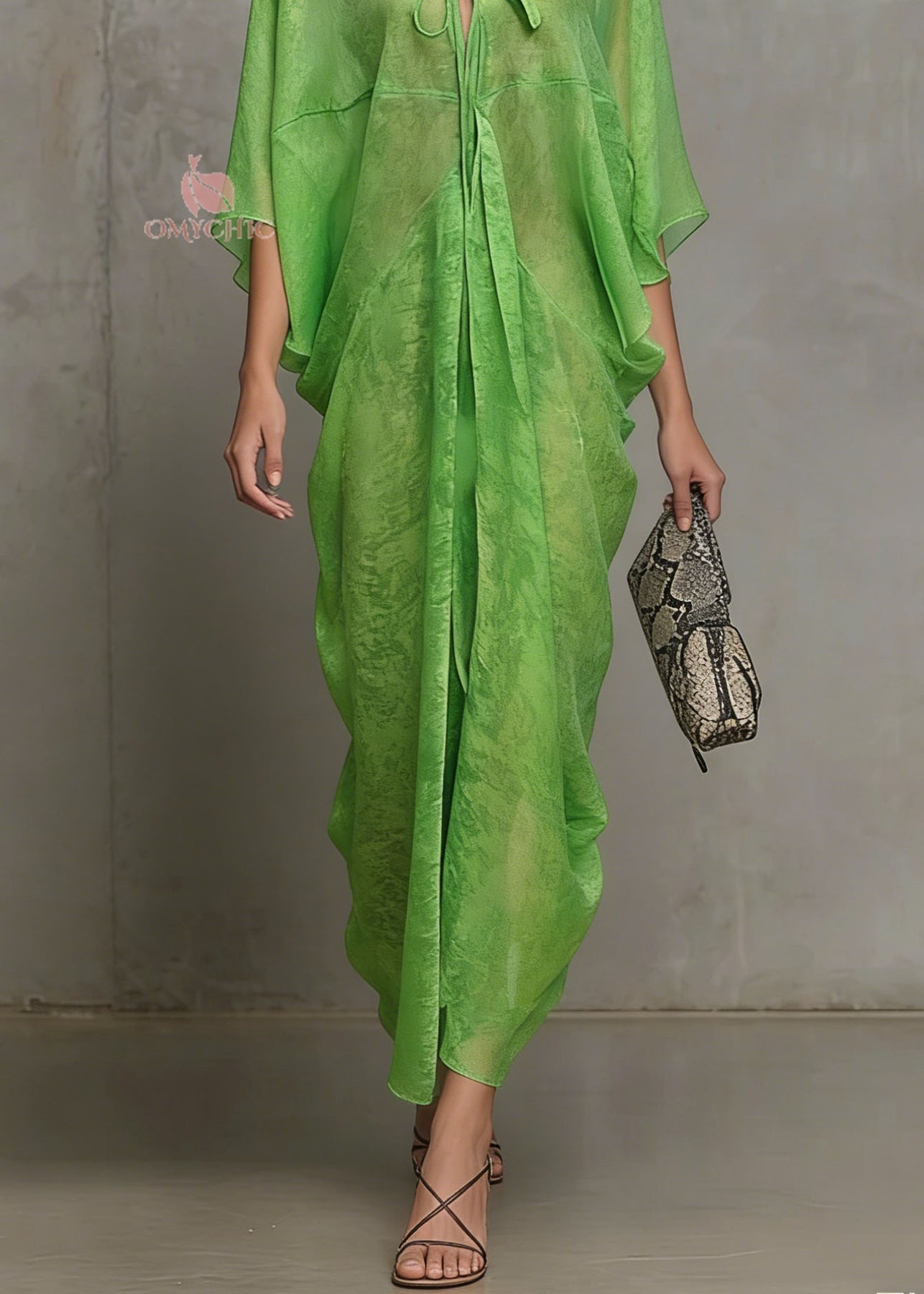 Women Green Lace Up Chiffon Vacation Dress Summer