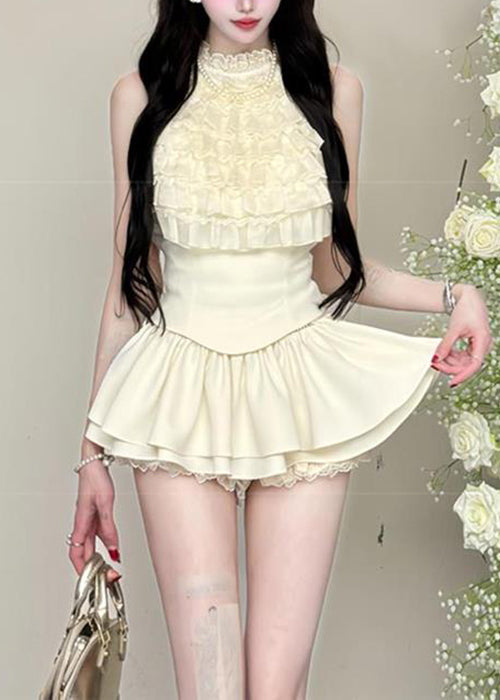 Bohemian Black Ruffled Tops And Skirts Cotton Two Pieces Set Sleeveless