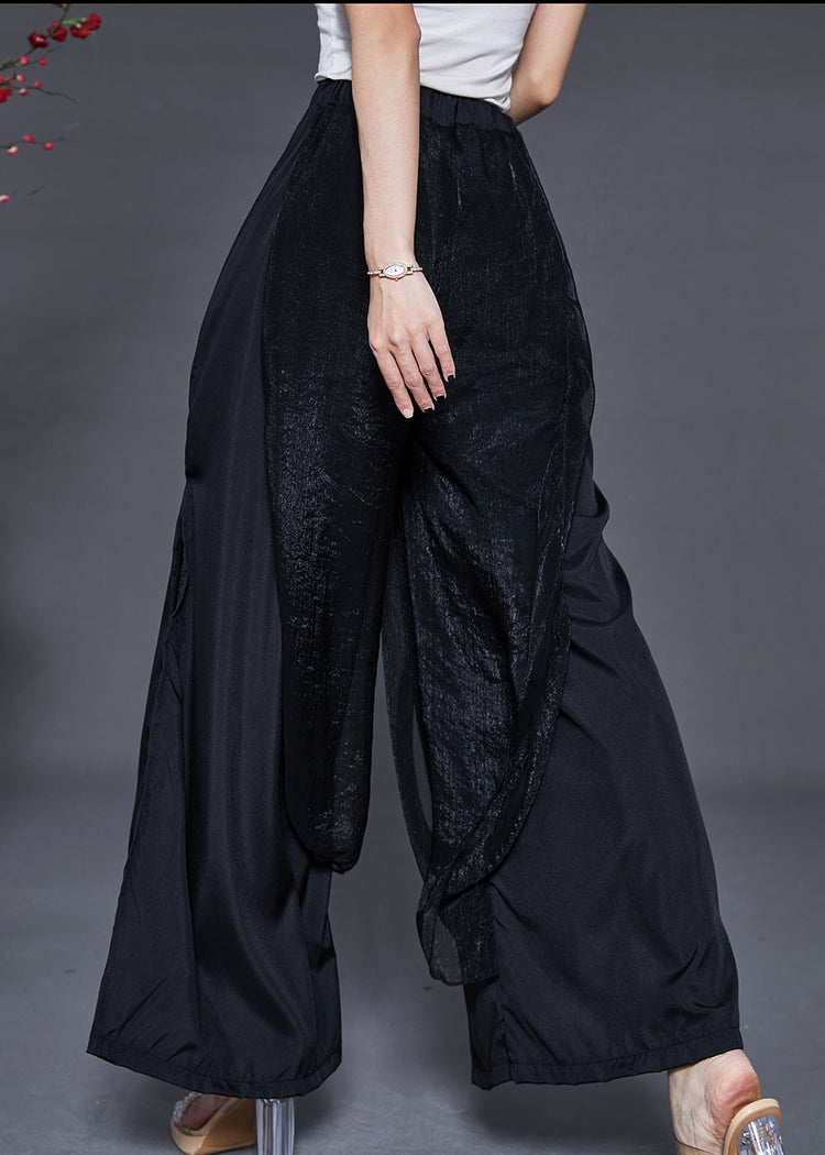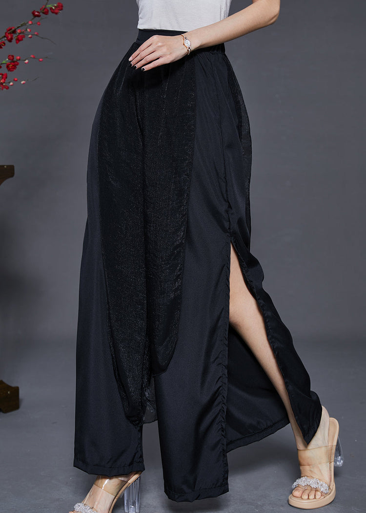 Bohemian Black Side Open Chiffon Wide Leg Pants Summer