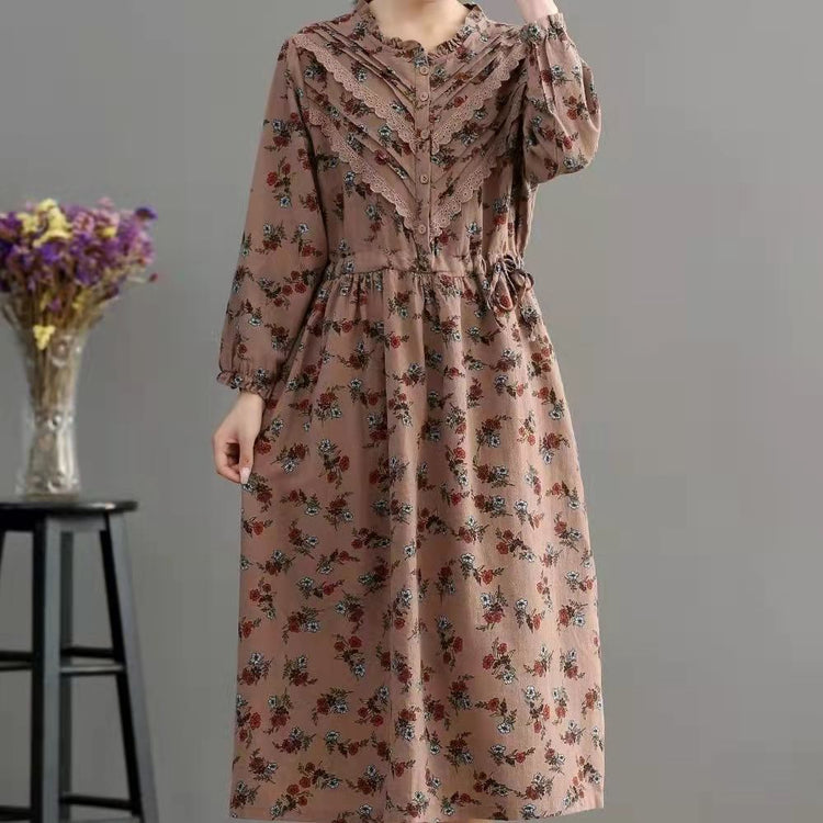 Bohemian Blue Pockets Print Loose Fall Maxi Dress Long sleeve