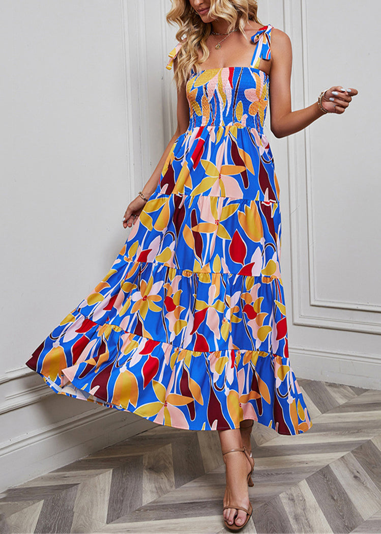 Bohemian Blue Print High Waist Cotton Dresses Summer