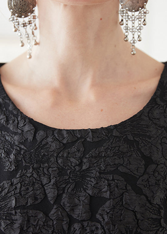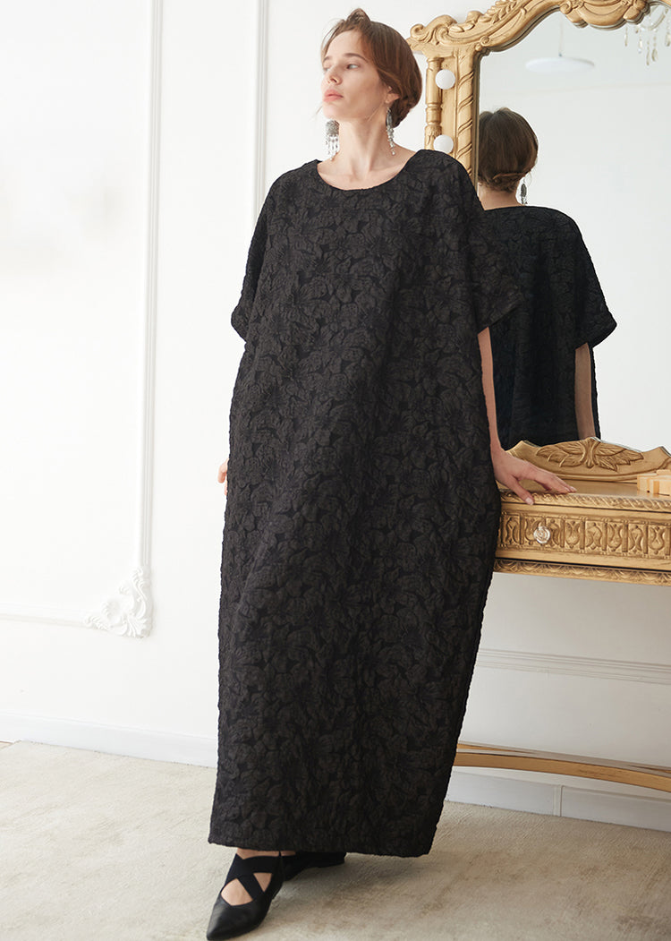French Black O Neck Jacquard Cotton Robe Vacation Dresses Summer
