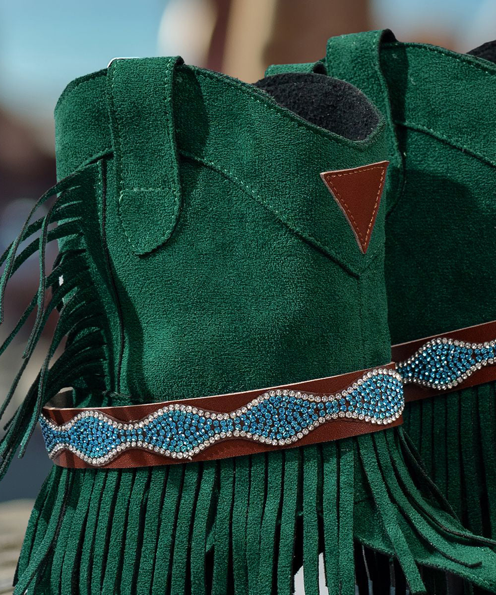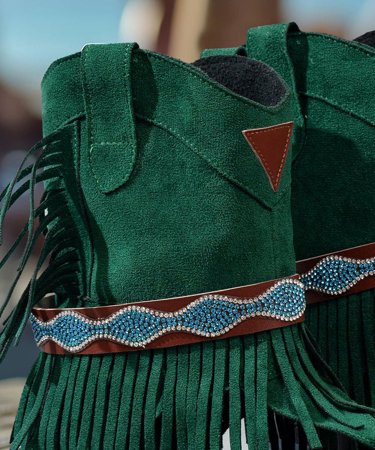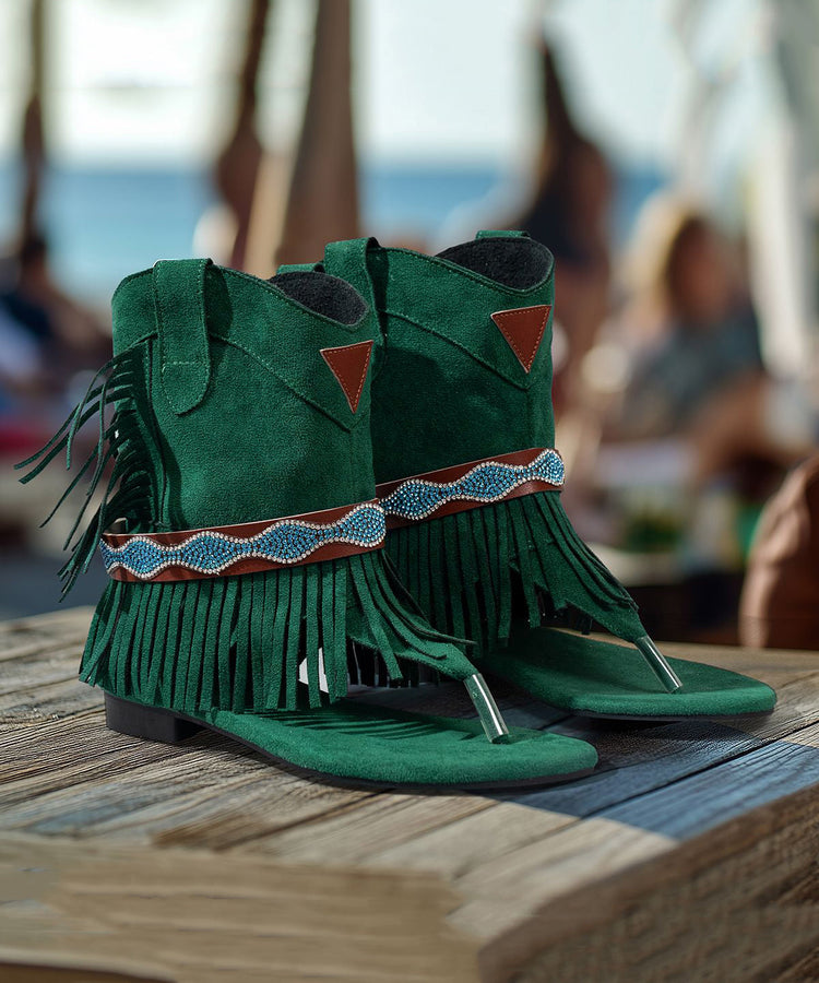 Chic Green Tasseled Zircon Splicing Low Heel Sandals Boots