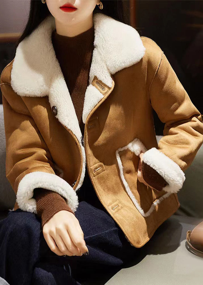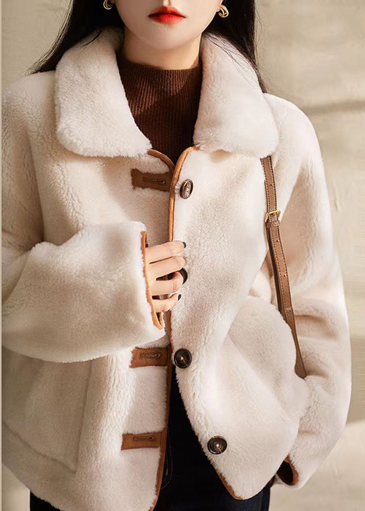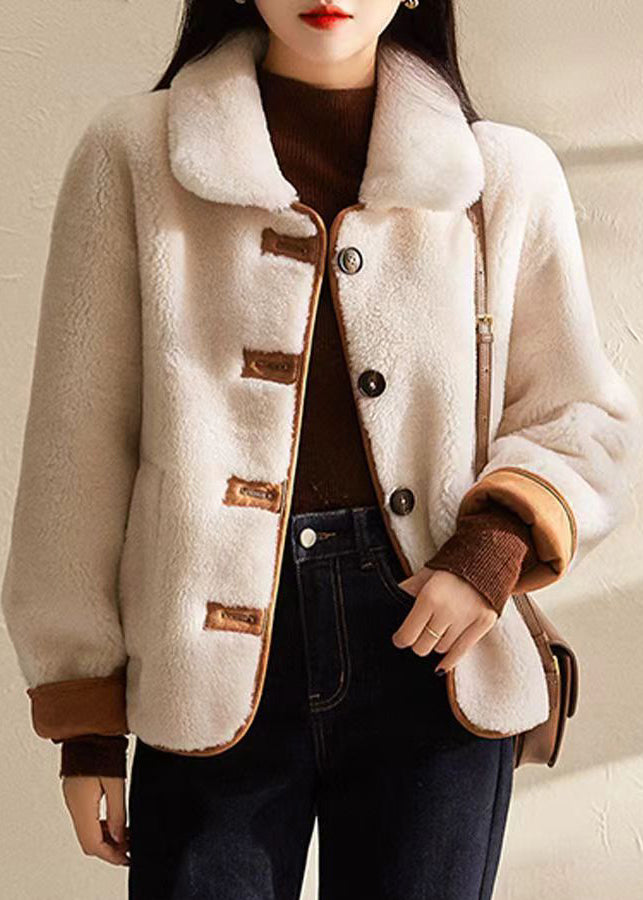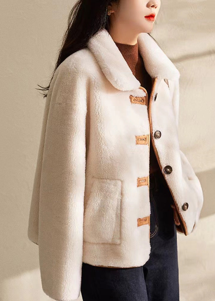 Boutique Beige Peter Pan Collar Button Wear On Both Sides Wool Coat Winter