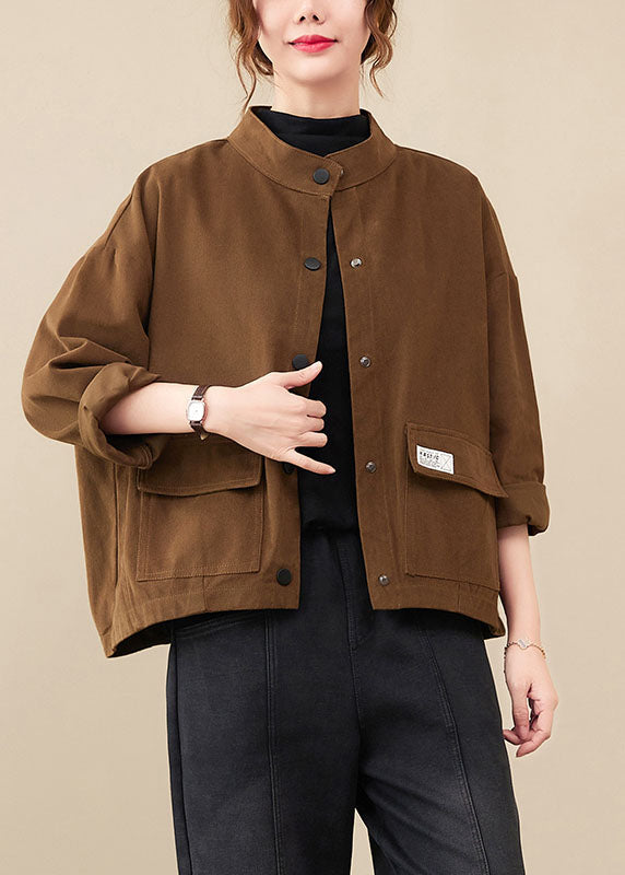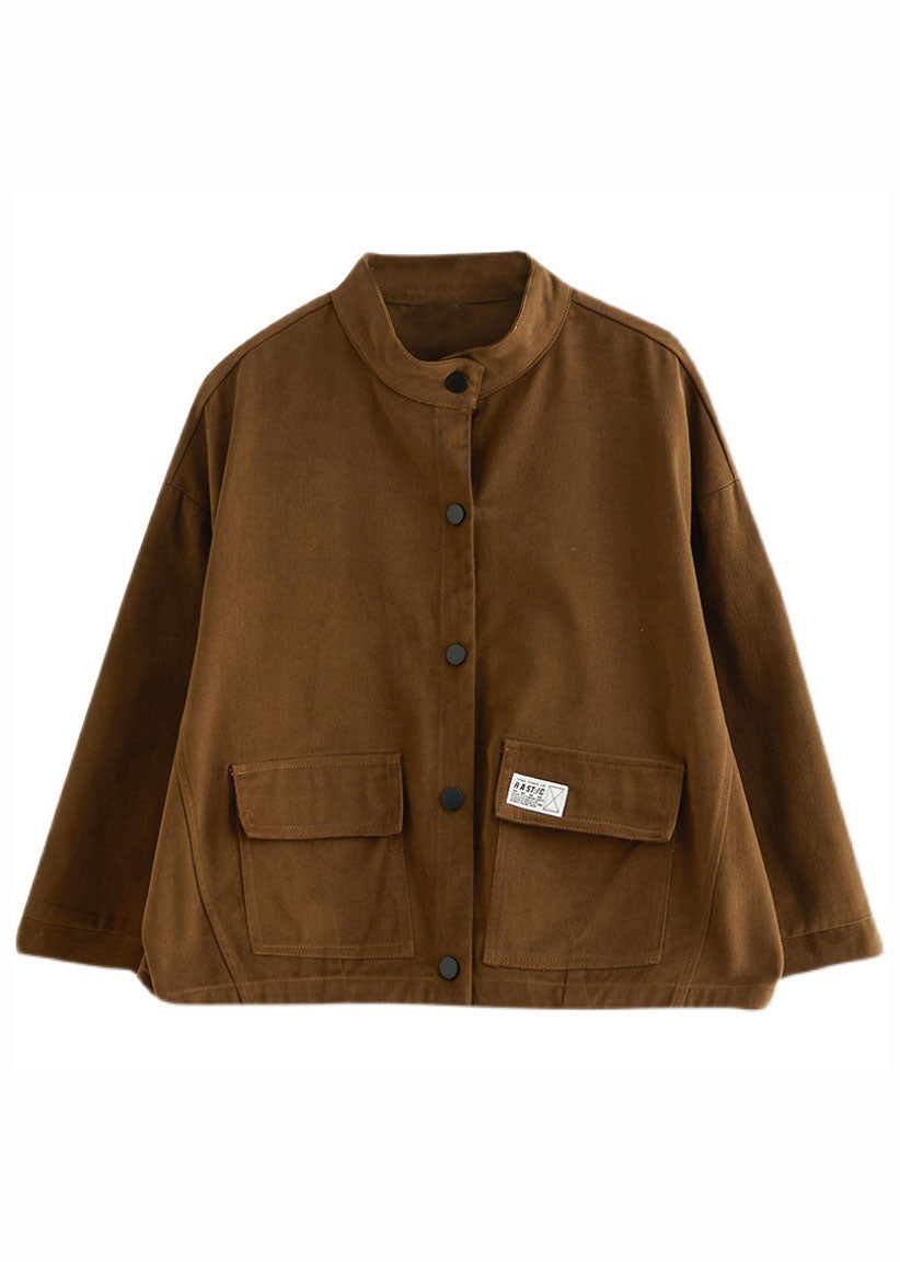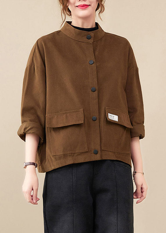 Chic Coffee Pockets Patchwork Button Coats Fall