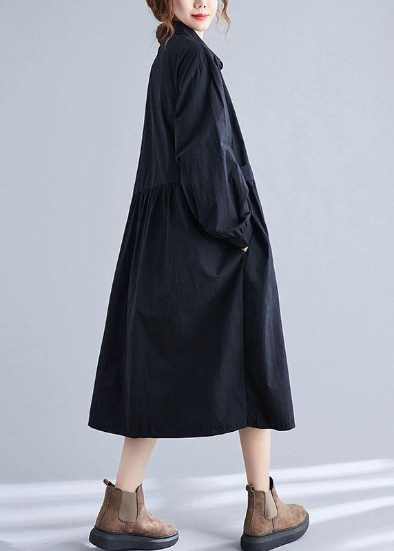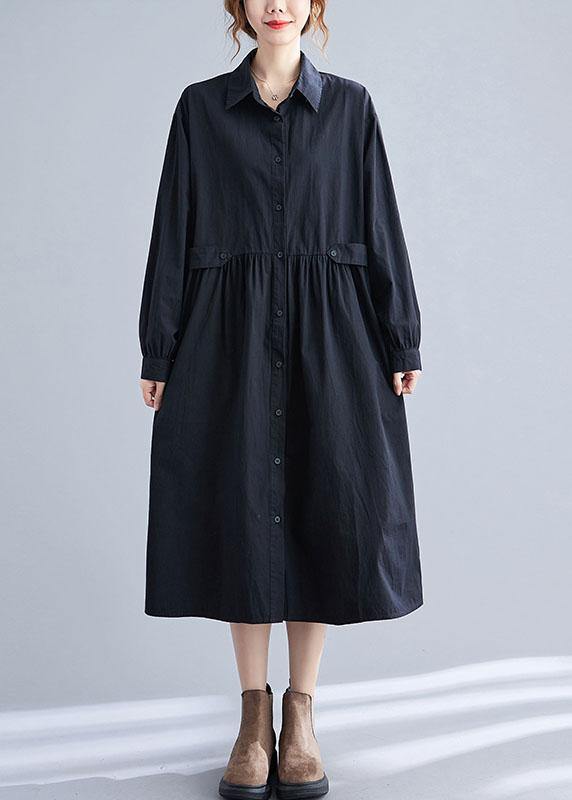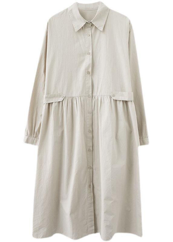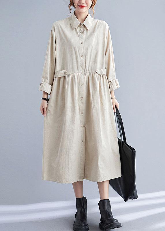 DIY Apricot Peter Pan Collar Button Patchwork Fall Vacation Dresses Long sleeve
