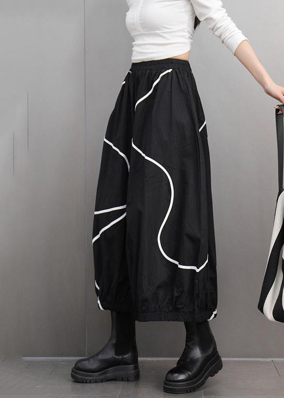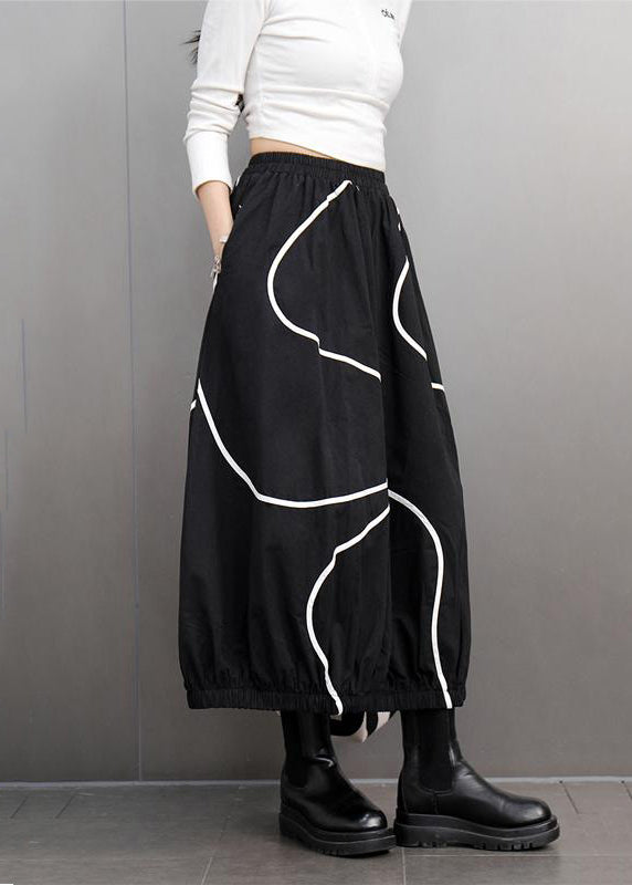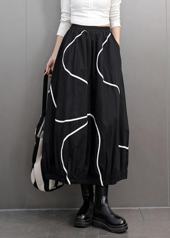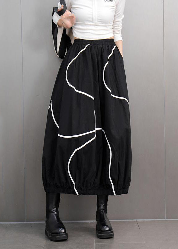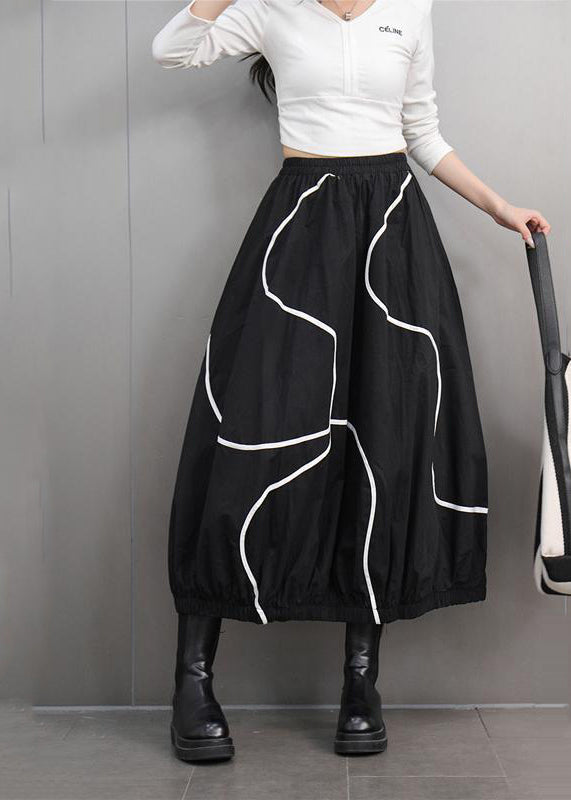 Fitted Black Elastic Waist Striped Lantern Skirts Spring