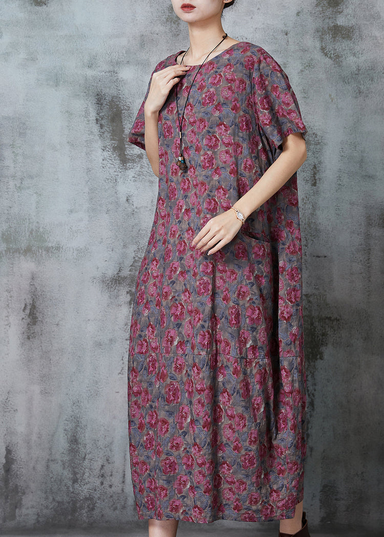 Handmade Purple Oversized Print Linen Dresses Summer