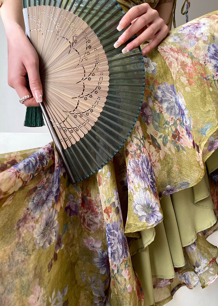 Women Square Collar Print Chiffon Maxi Dresses Sleeveless