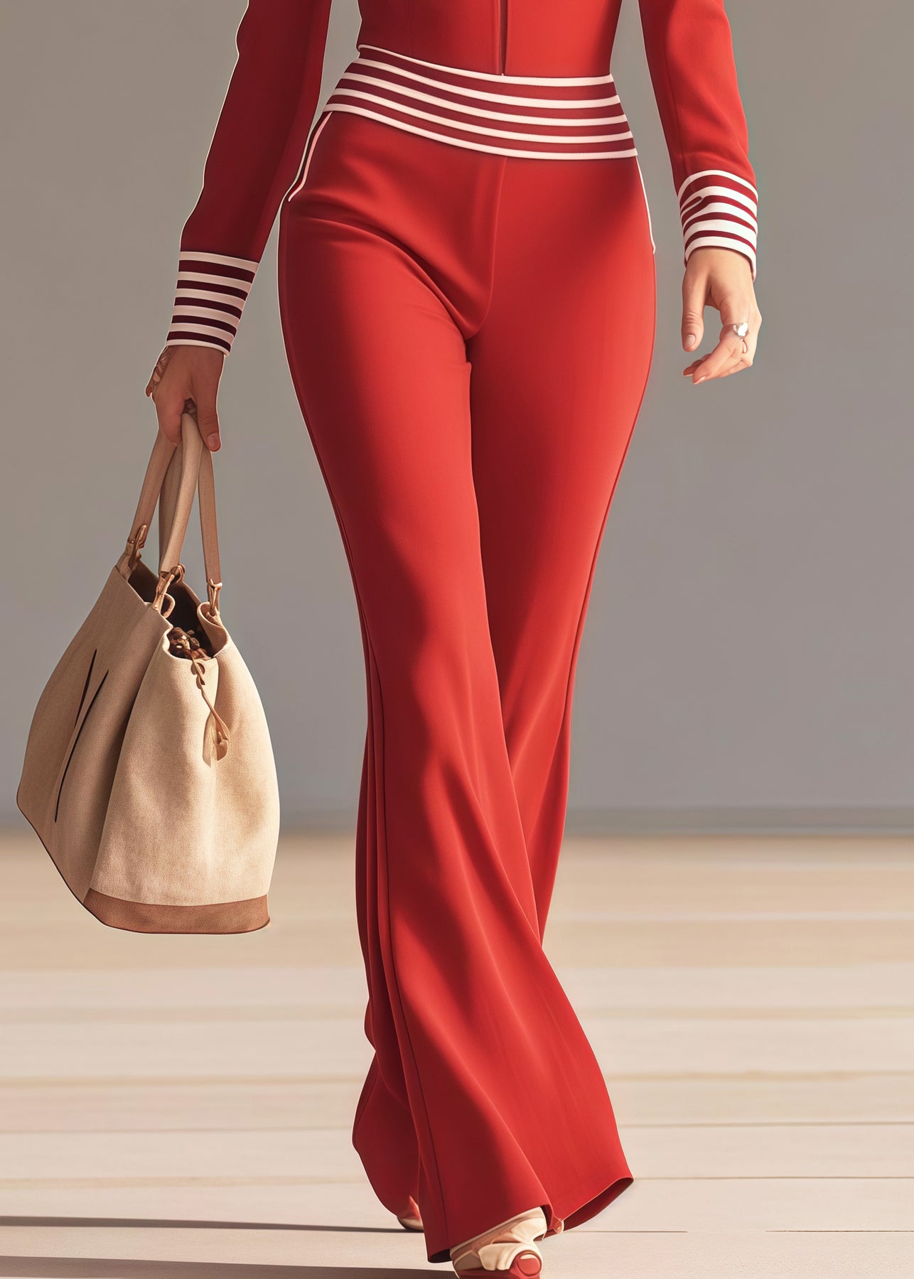 Silm Fit Red V Neck Patchwork Striped Chiffon Jumpsuits Spring