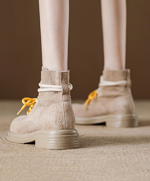 Red Lace Up Suede Splicing Boutique Chunky Boots