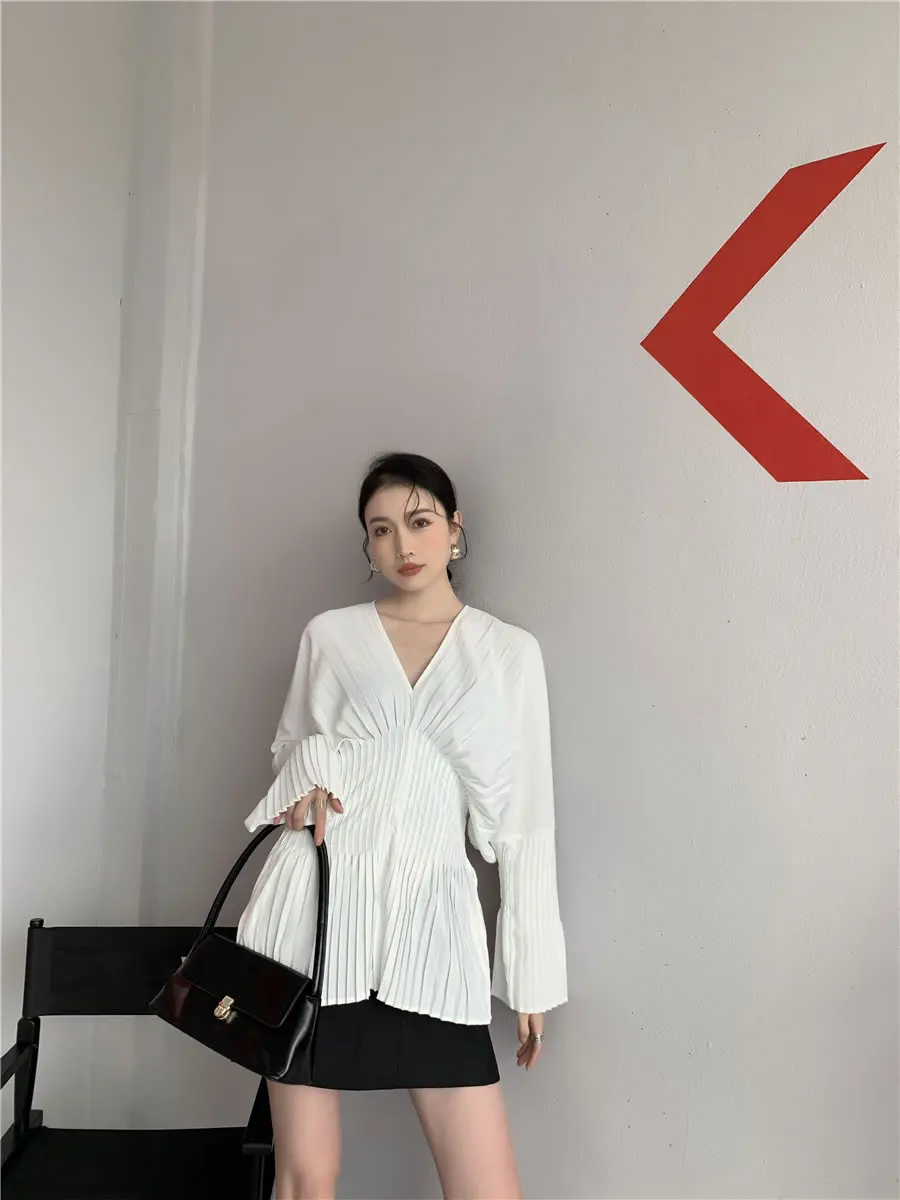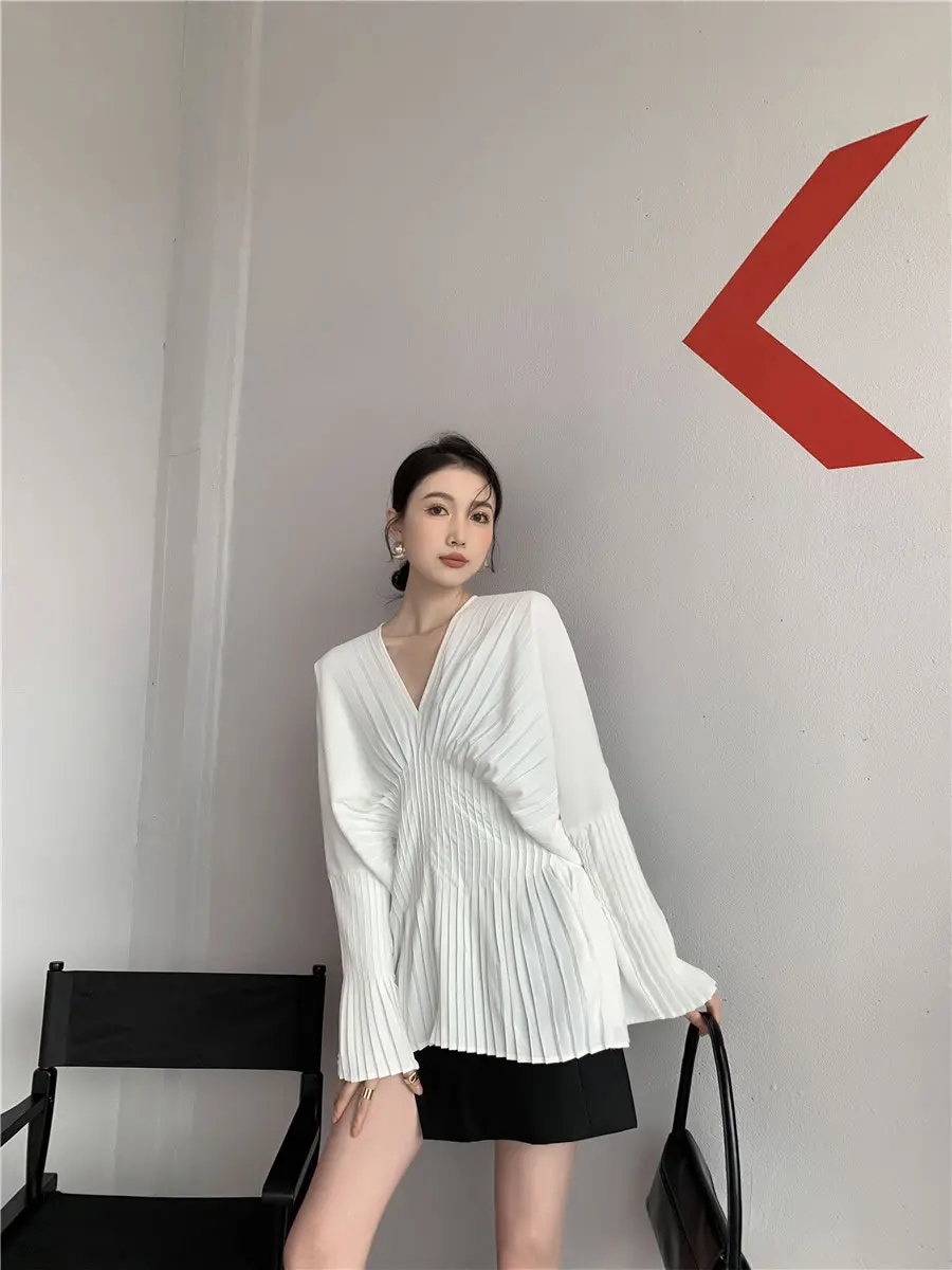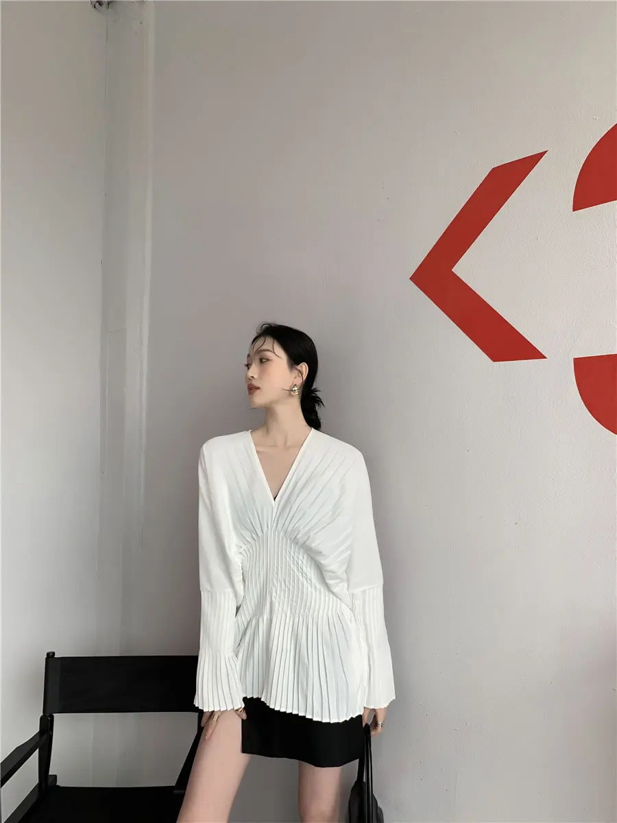 Personality Trendy Dress Solid Color Pleated Simplicity Temperament All-match