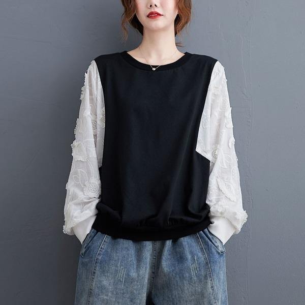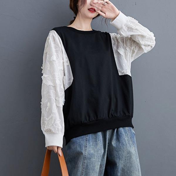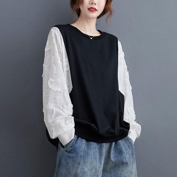 Women Casual Sweatshirt New Arrival 2020 Autumn Korean Simple Style O-neck Patchwork Tops Pullovers