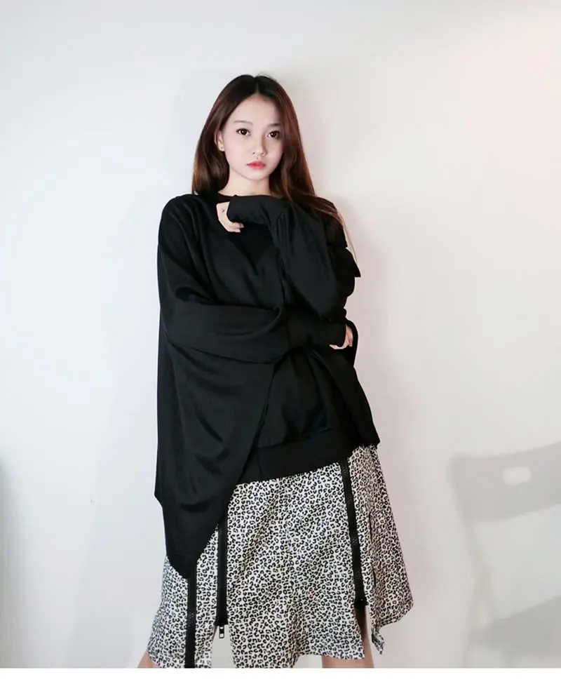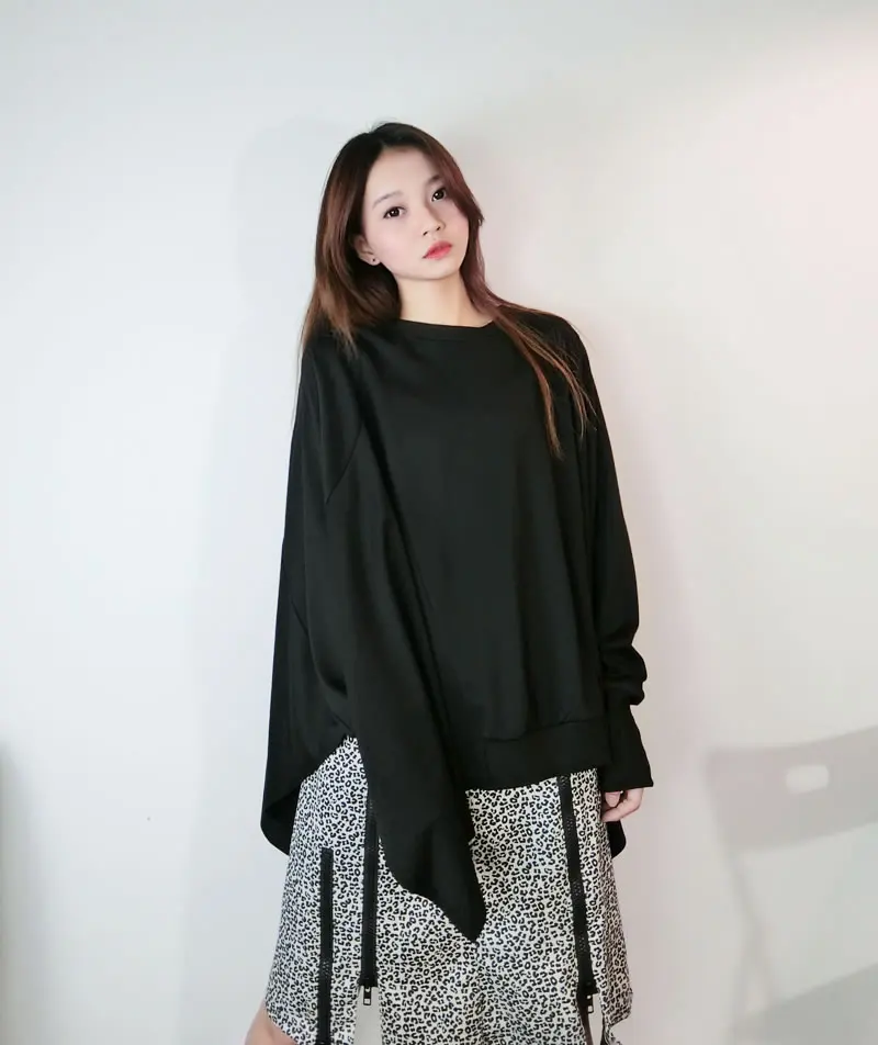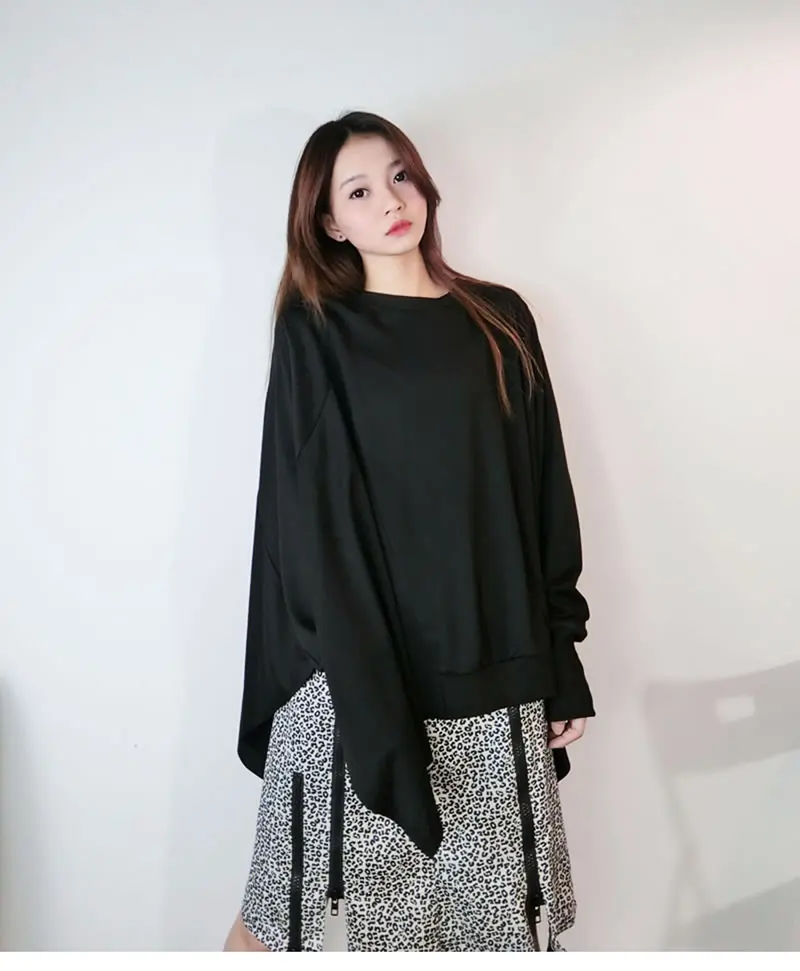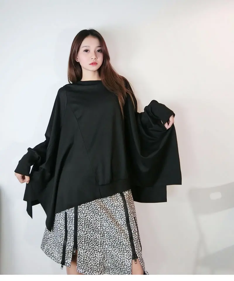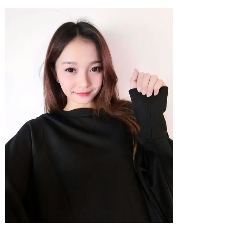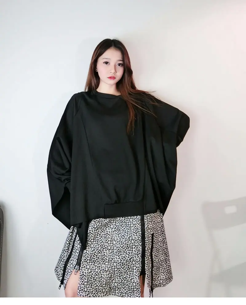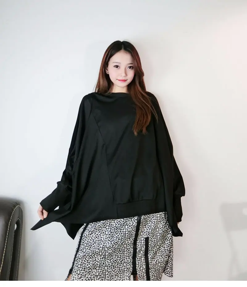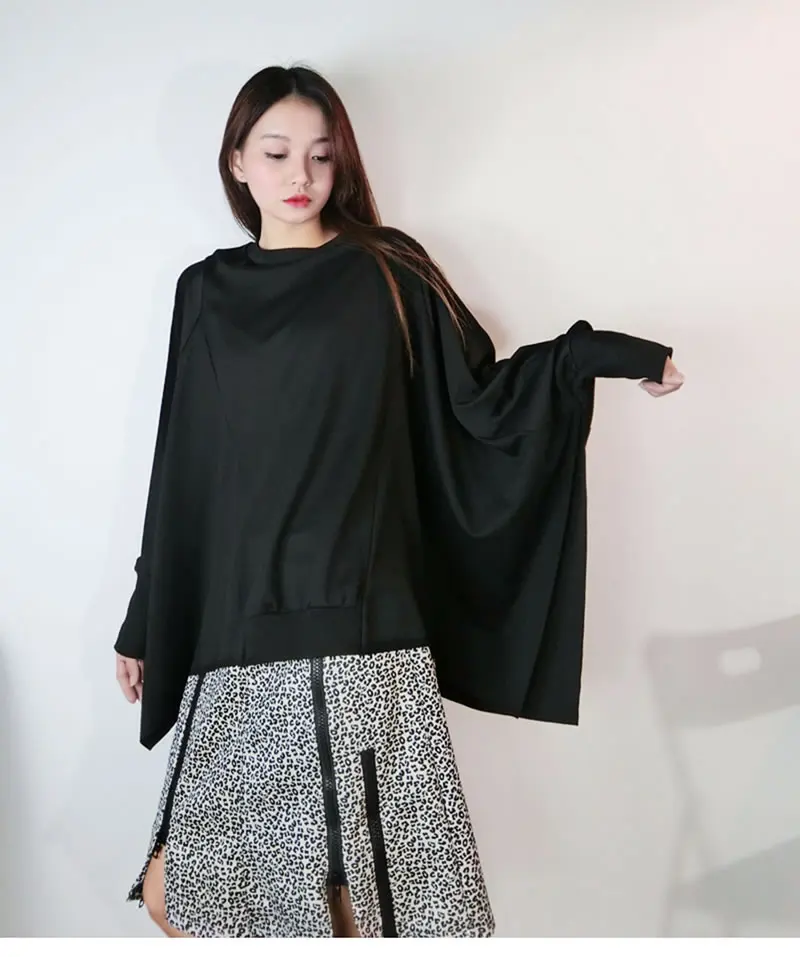 Women T-shirt Fashion Batwing Sleeve Solid Color Loose Pullover Top Winter Casual All-match Black Street Trendy