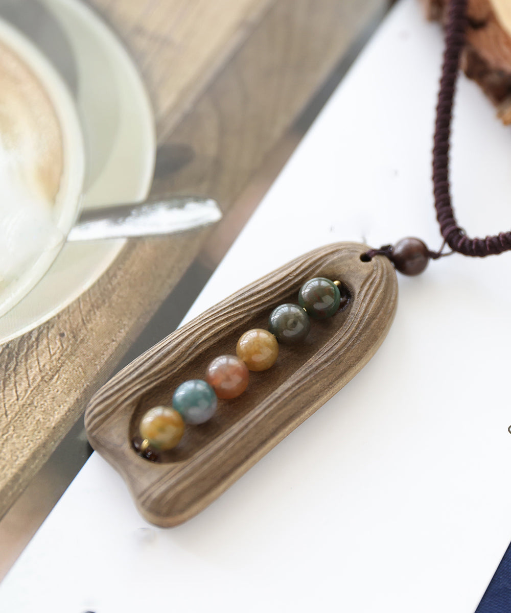Art Khaki Hand Knitting Six Pearl Pendant Necklace