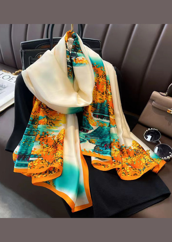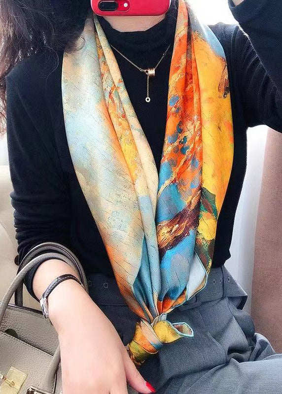 Spring And Autumn Print Silk Scarf And Shawl Dual Use