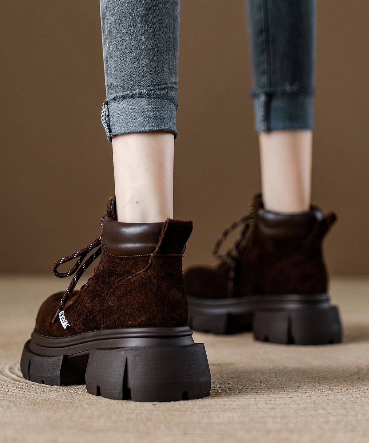 Classy Suede Splicing Boots Lace Up Brown Cowhide Leather