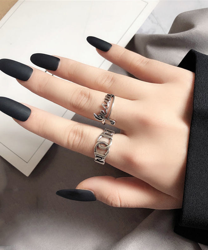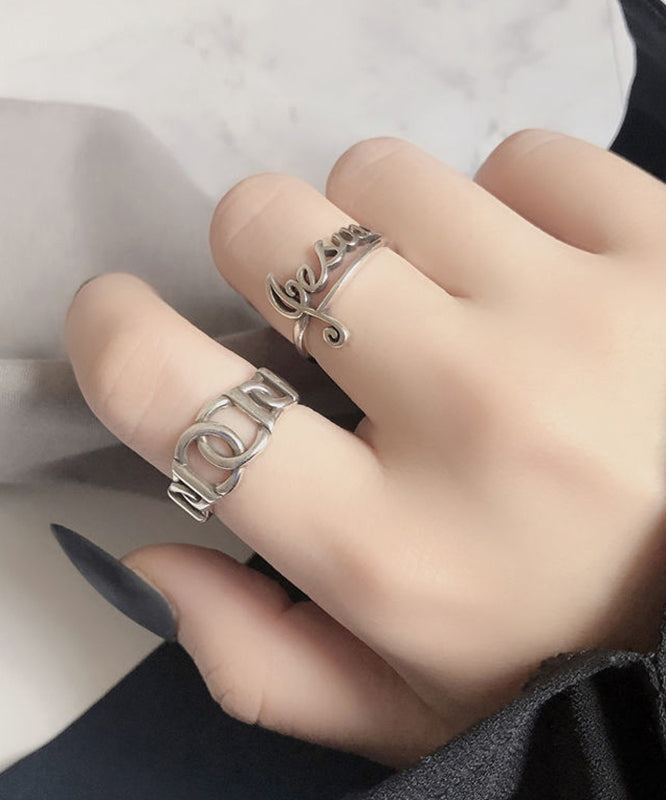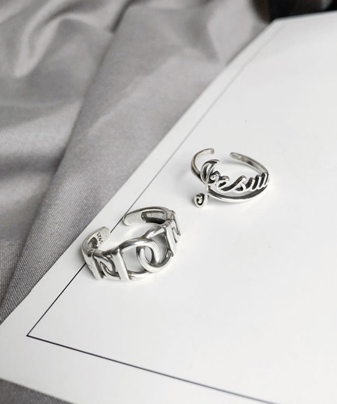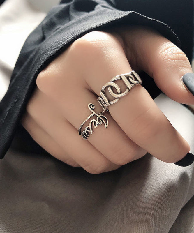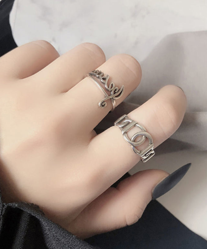 Boutique Silk Sterling Silver Graphic Hollow Out Open Rings Two-Piece Set