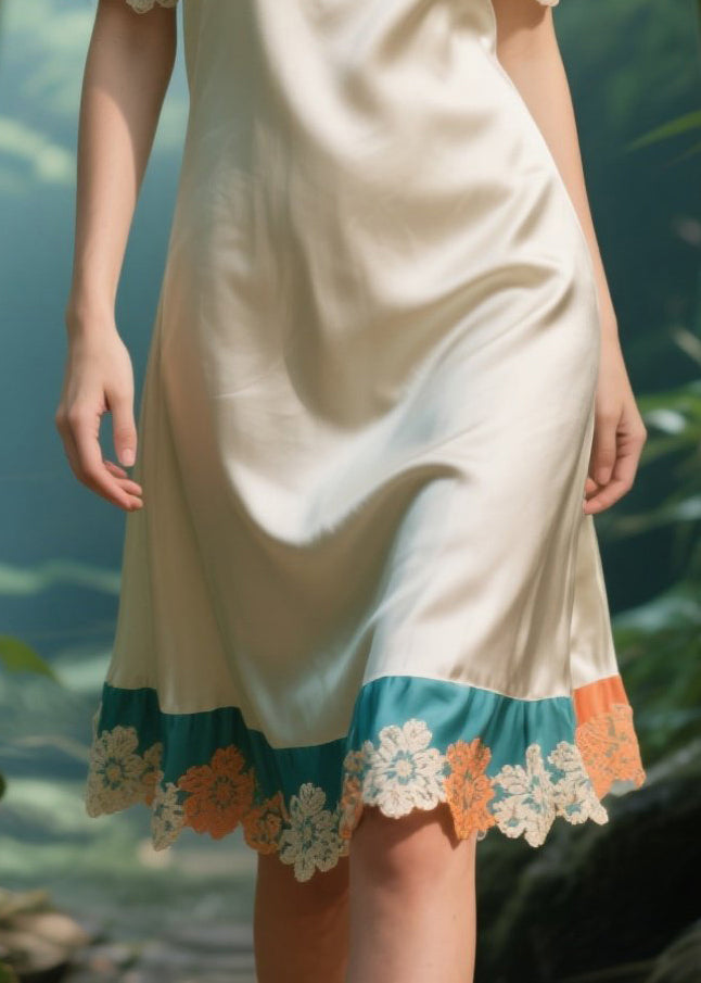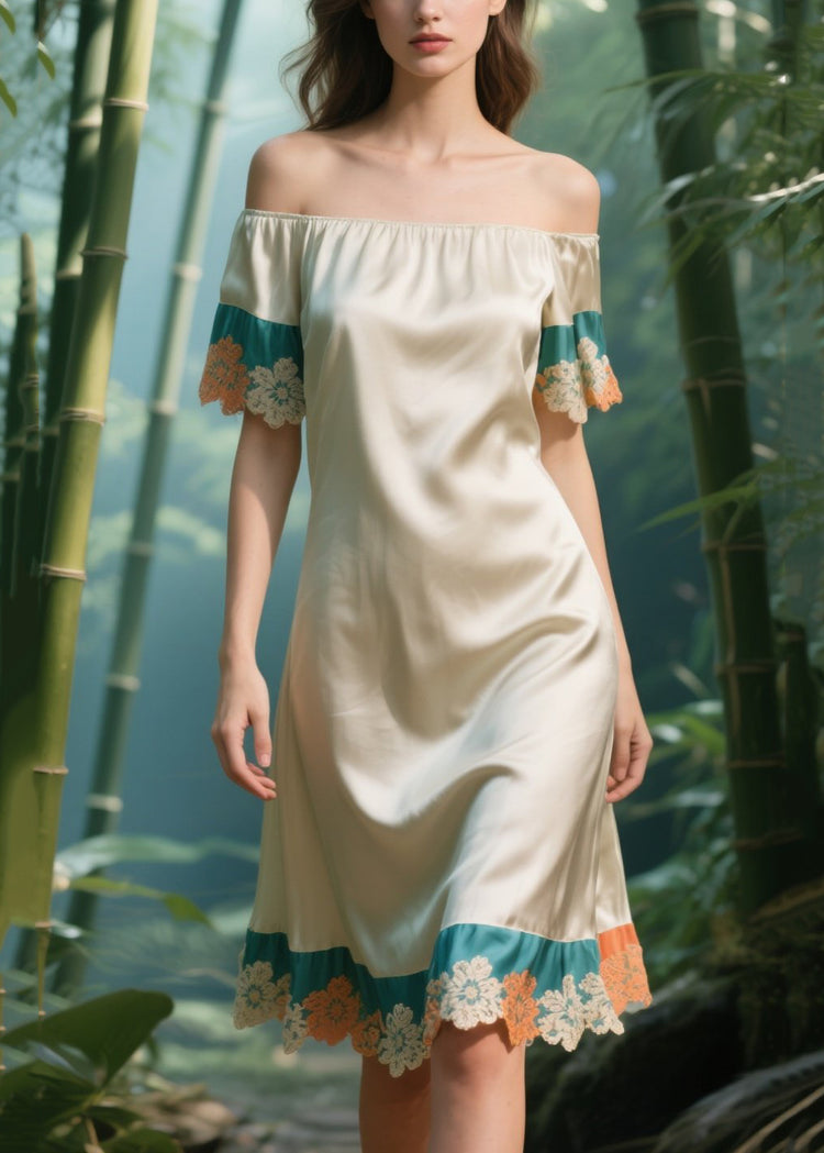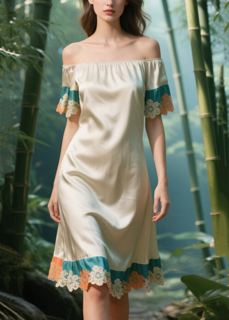 Chic Apricot Cold Shoulder Patchwork Silk Strapless Dress Summer