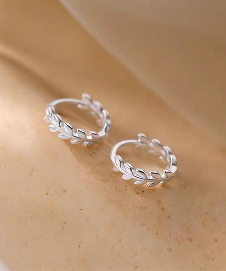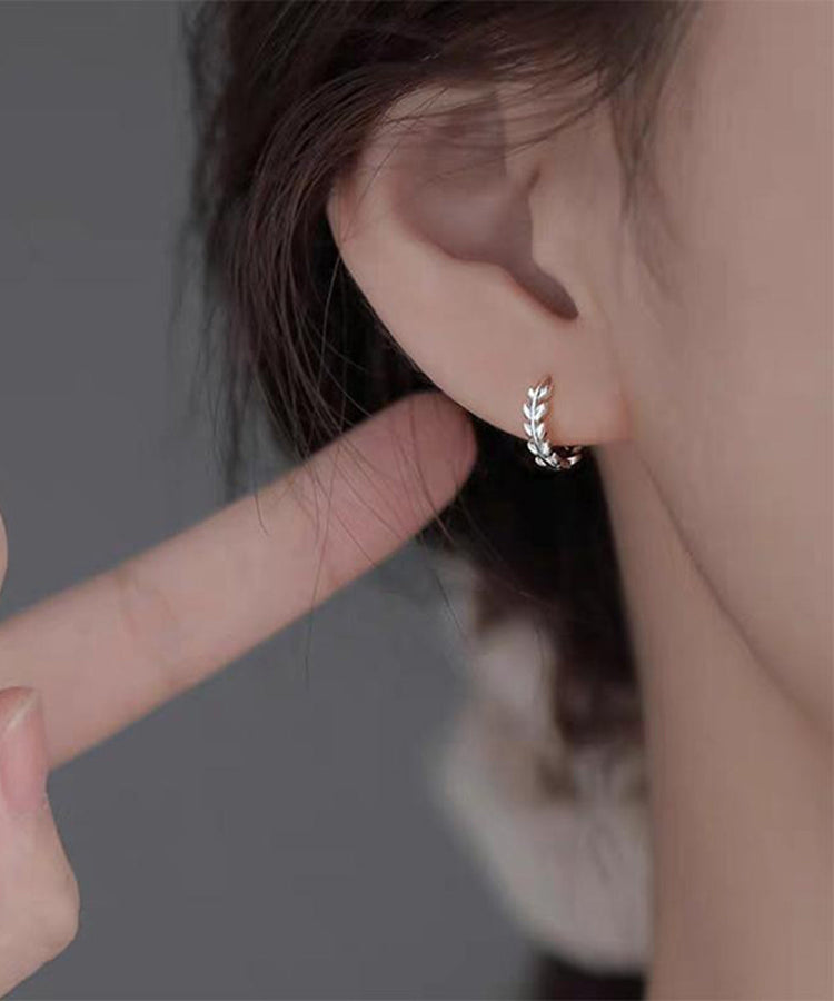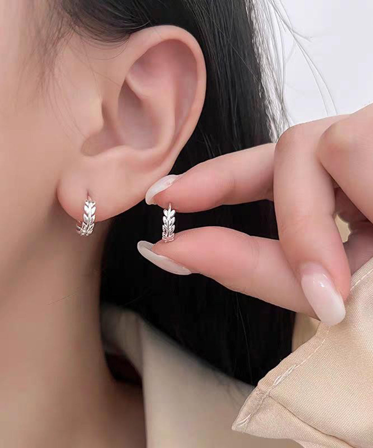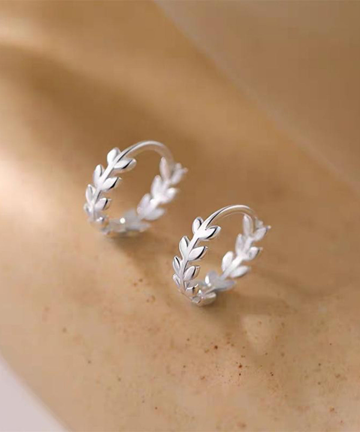 Cute Silk Sterling Silver Ear Of Wheat Hoop Earrings
