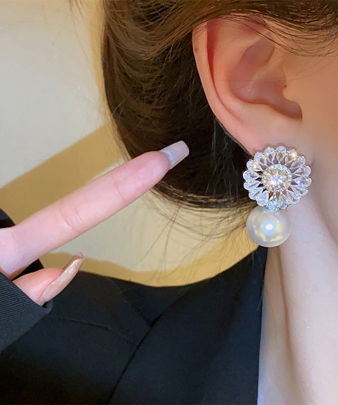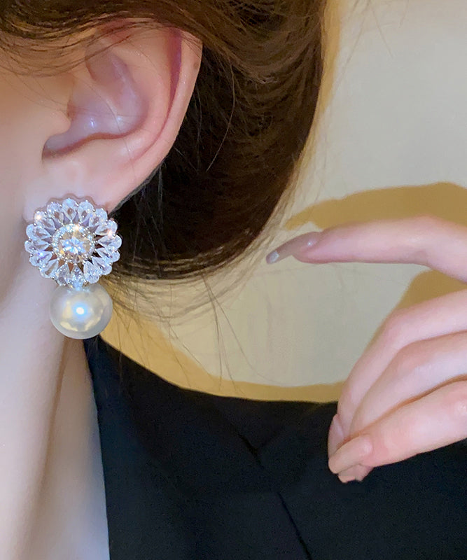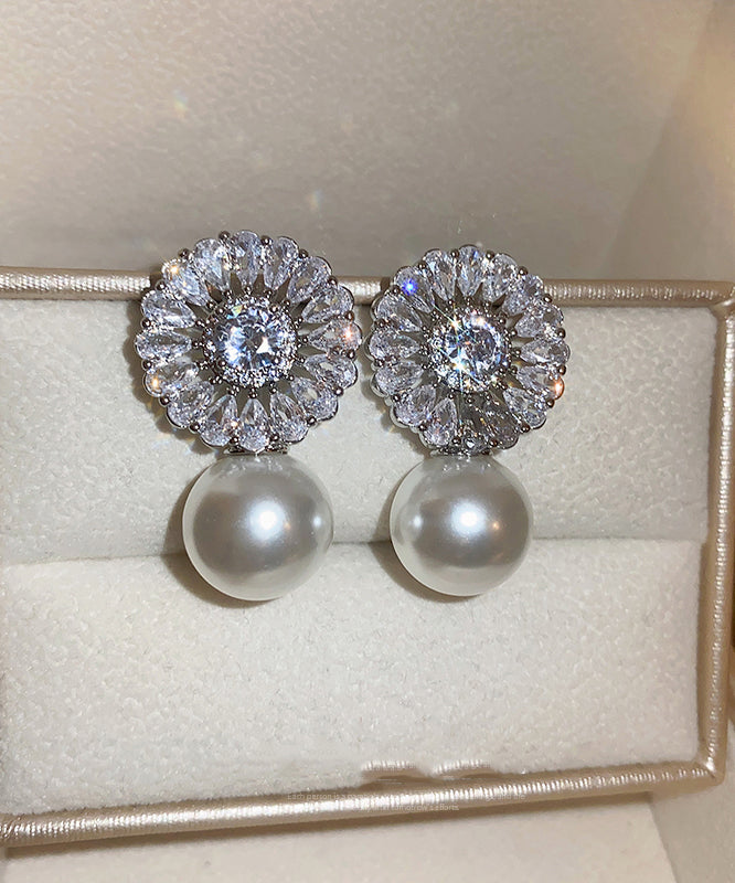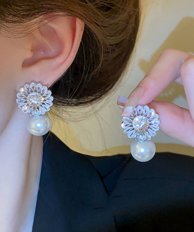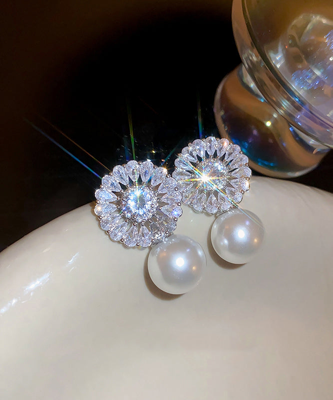 Elegant Silk Copper Zircon Pearl Drop Earrings