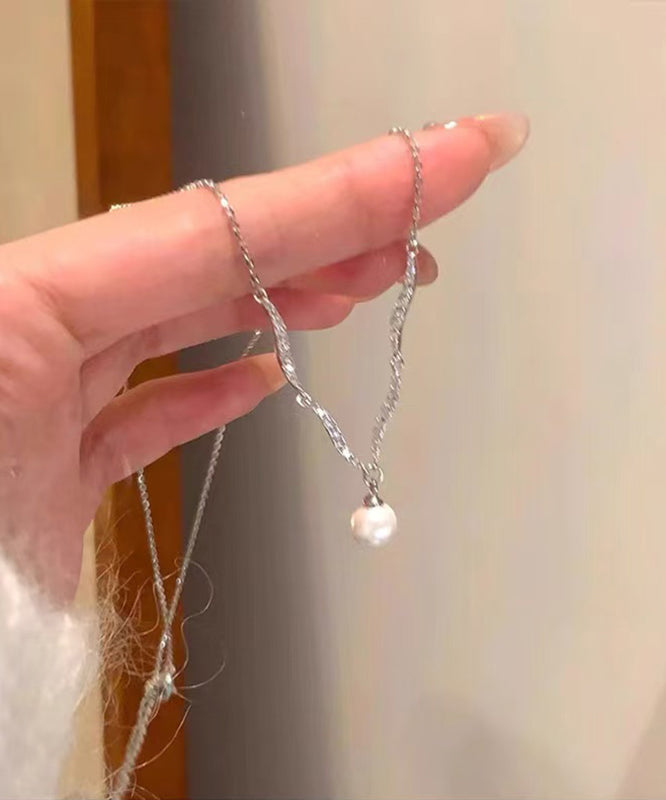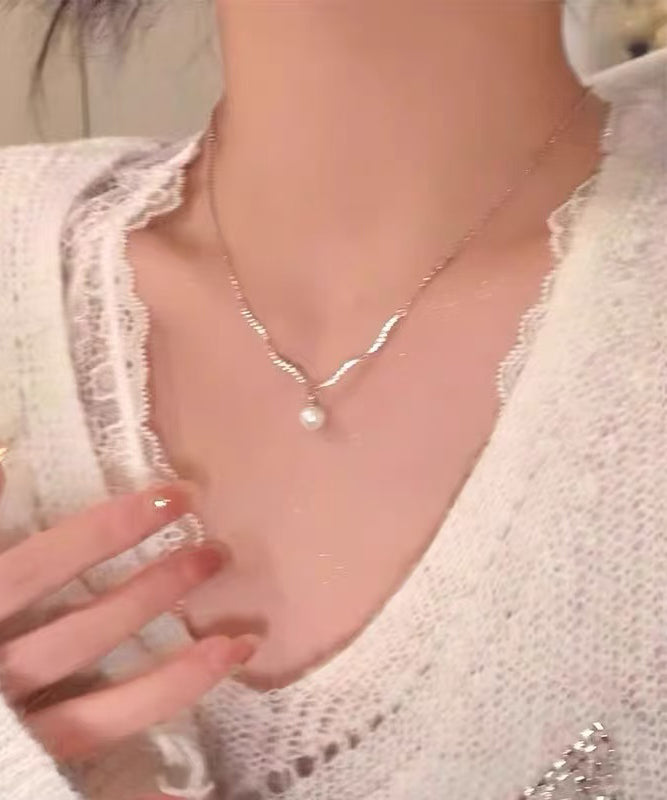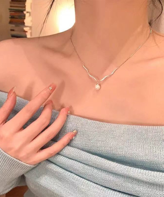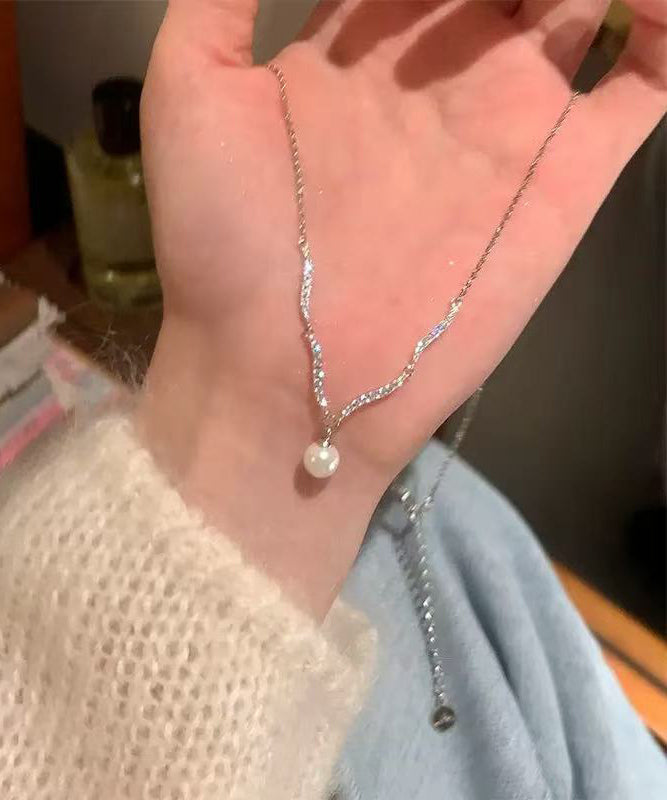 Fine Silk Sterling Silver Zircon Pearl Pendant Necklace