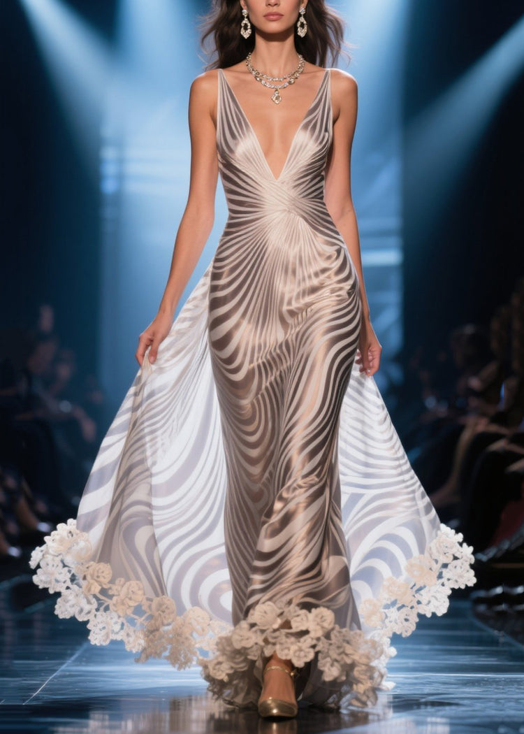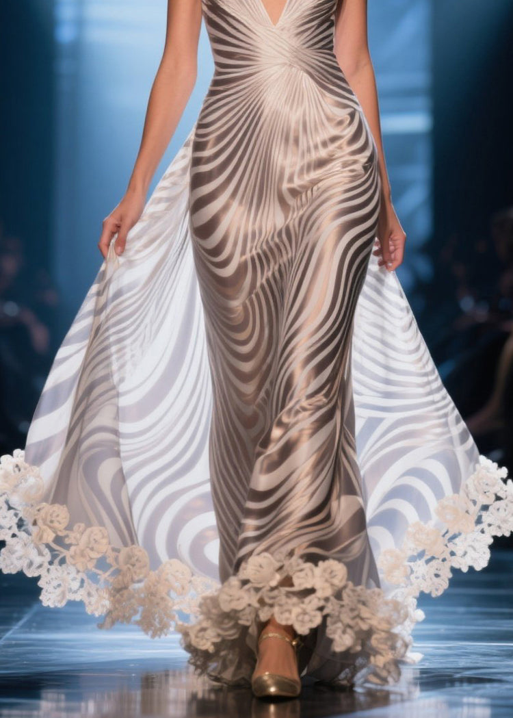 French Zebra Pattern Patchwork Lace Silk Vestidos Dress Summer