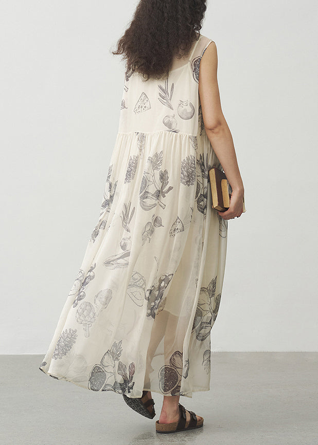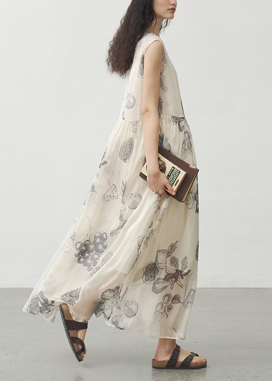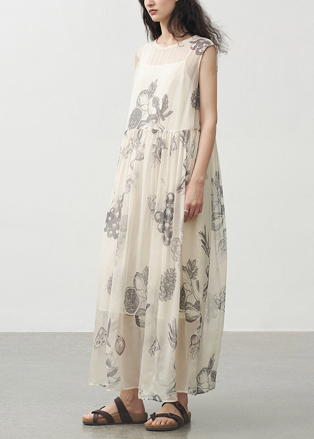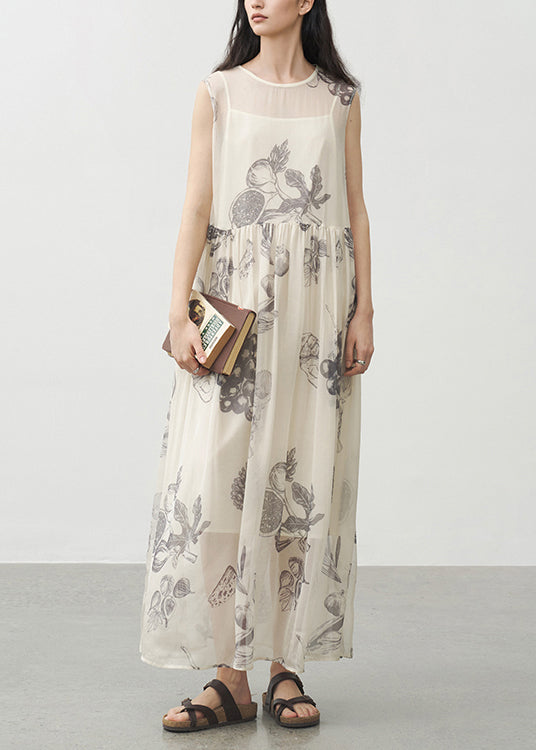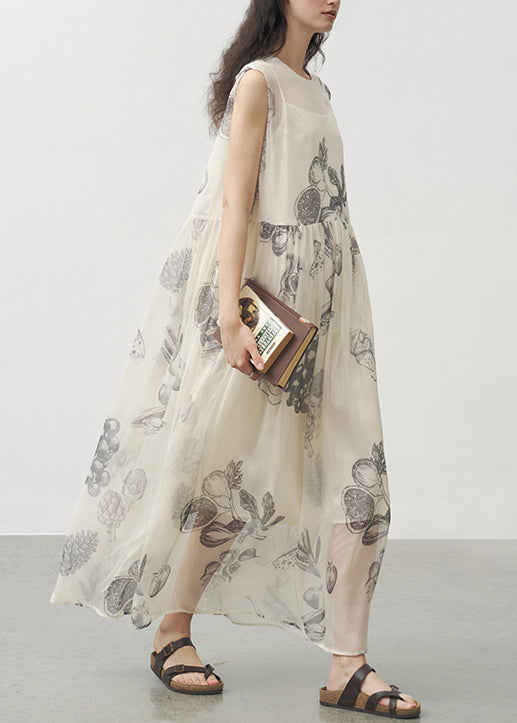 Handmade O Neck Print Patchwork Silk Dresses Sleeveless