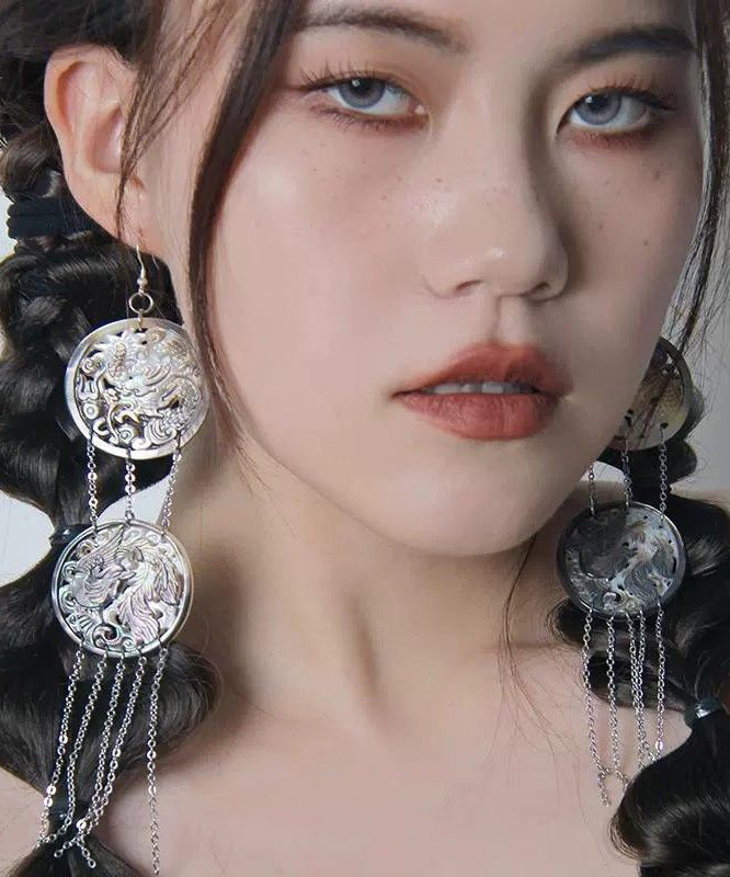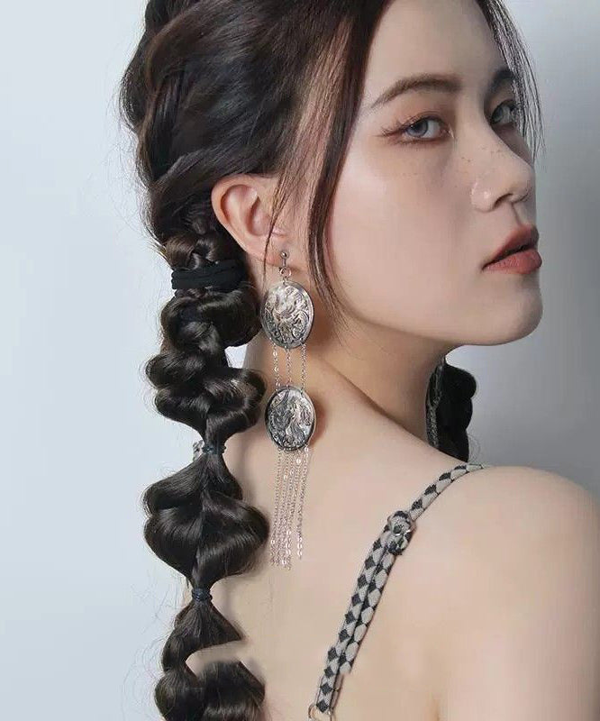 Loose Silk Sterling Silver Tassel Single Drop Earrings