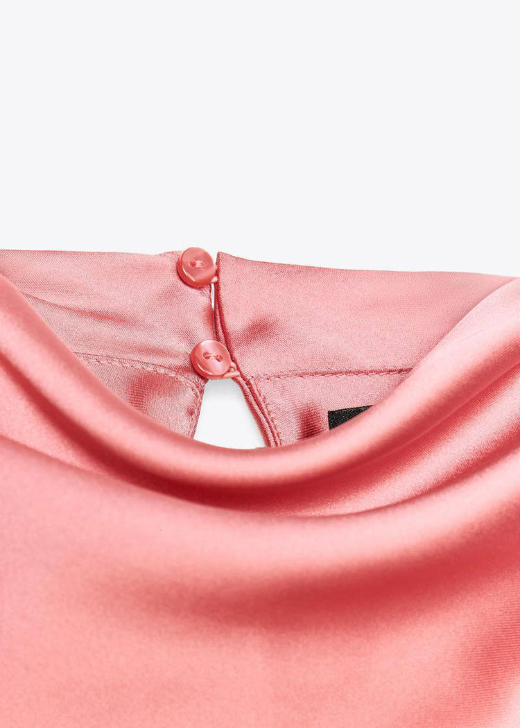 Slim Fit Pink Turtleneck Button Solid Silk Long Dress Sleeveless