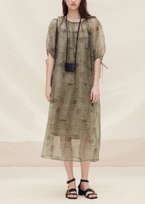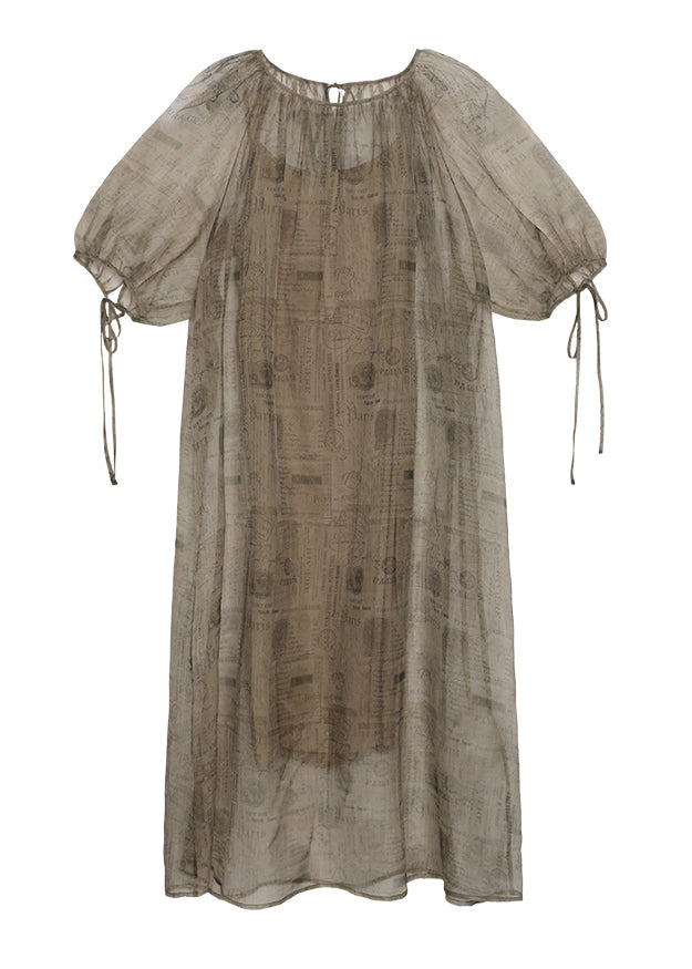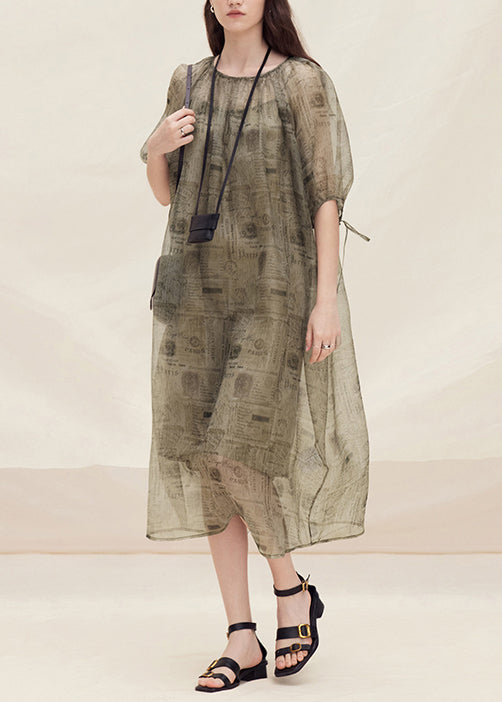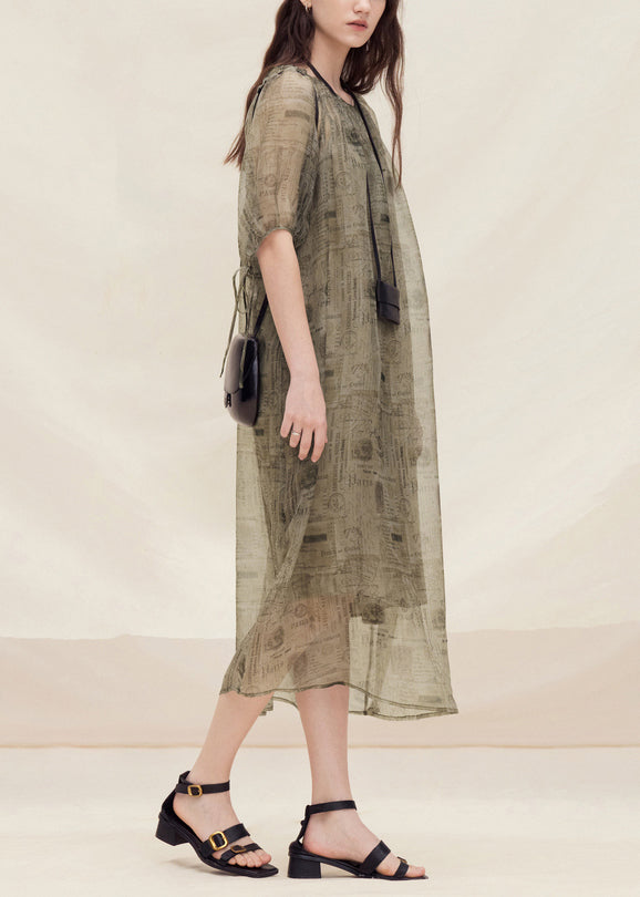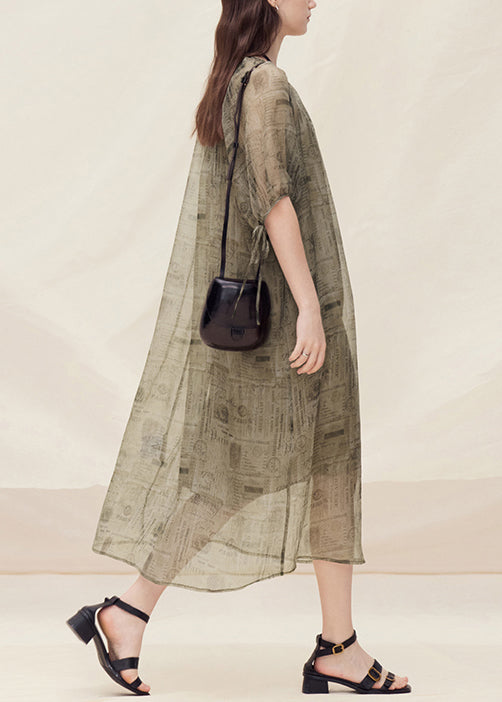 Style O Neck Print Lace Up Plus Size Silk Dress Summer