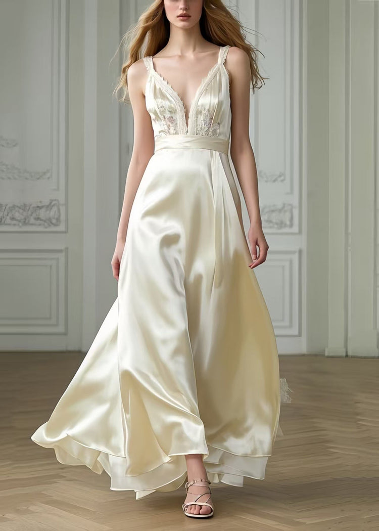 Women Milk White Exra Large Hem Draping Silk Party Dresses Summer