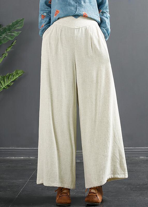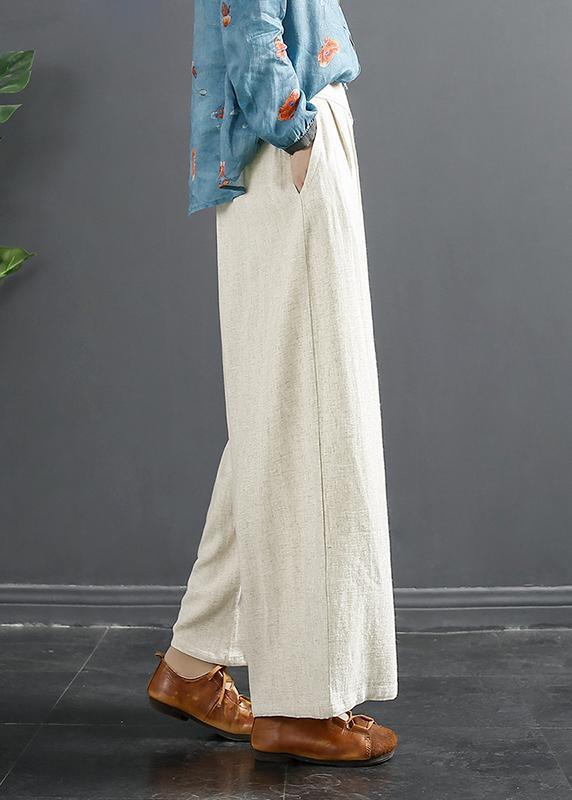Simple Beige Trousers Slim Spring Fabrics Wide Leg Pants