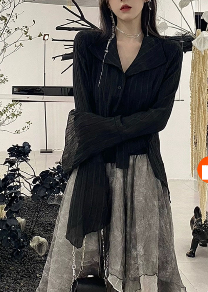 Italian black Peter Pan Collar asymmetrical design Shirt Top flare sleeve