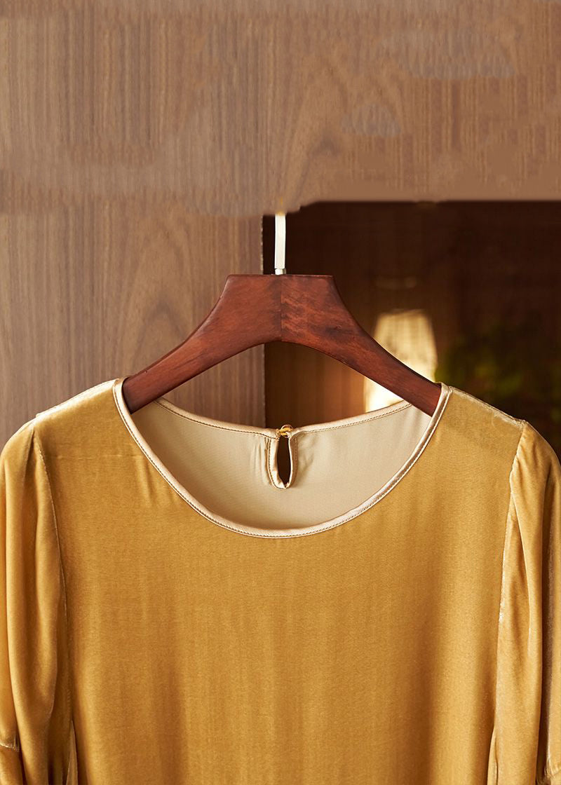 New Khaki O Neck Patchwork Silk Velour Dress Lantern Sleeve