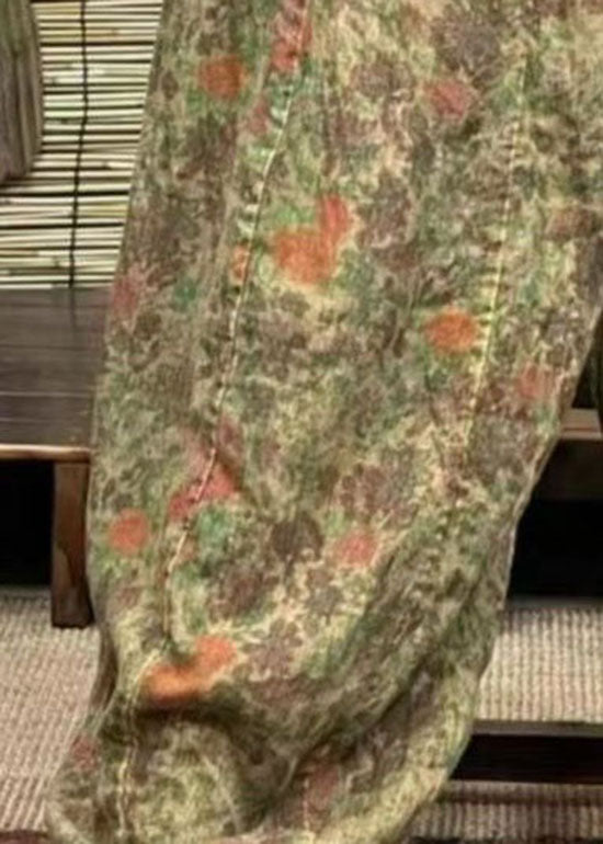 Green Pockets Patchwork cotton blend Lantern Pants Elastic Waist Summer