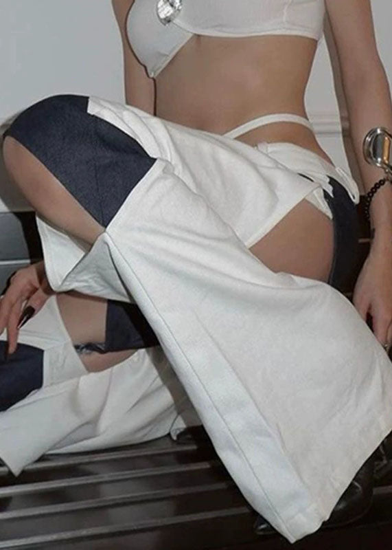 French Gradient Color Pockets Patchwork Denim Straight Pants Summer