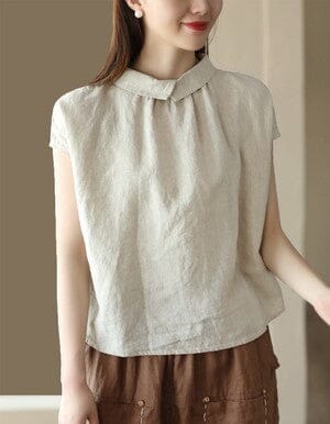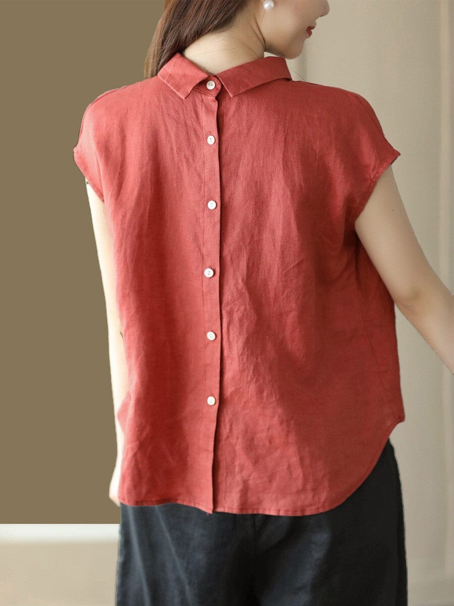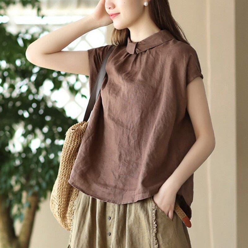 Loose Casual Retro Polo Collar Blouse Short Sleeve Summer