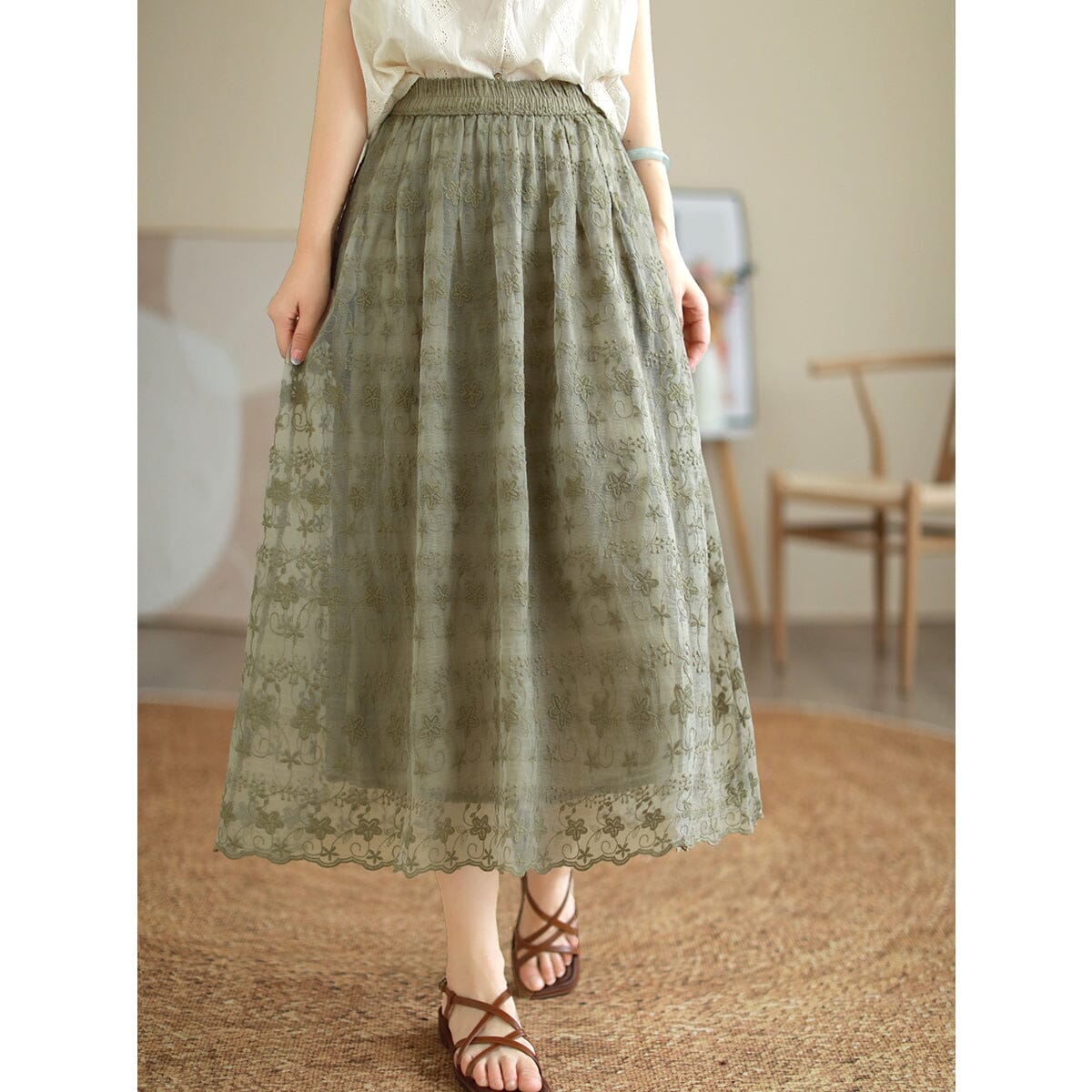 2023 Women Retro Figured Mesh Cotton Linen Skirt
