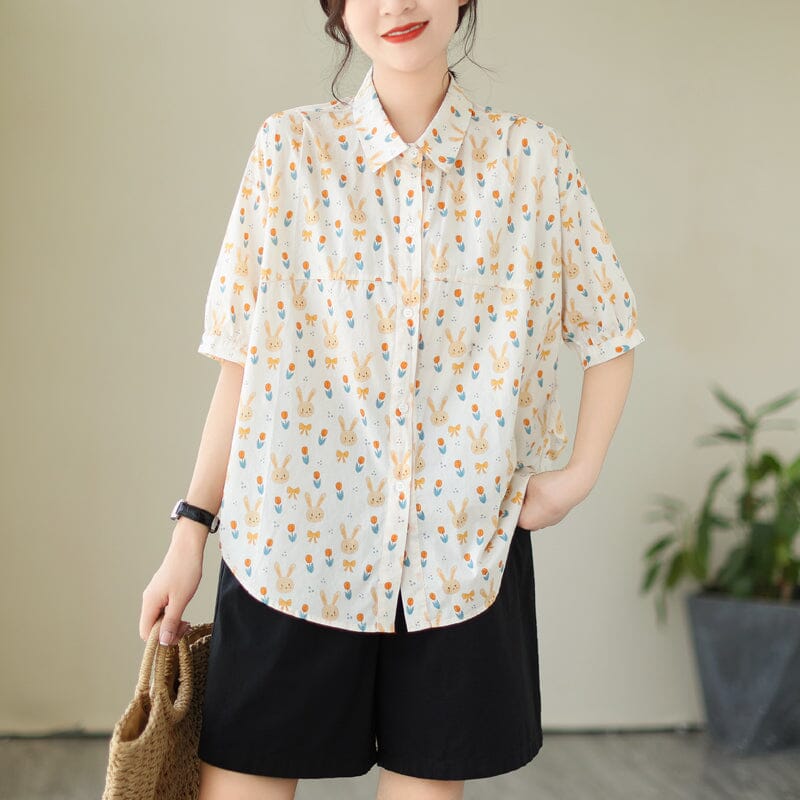 Rabbit Print Fashion Loose Casual Blouse Half Sleeve
