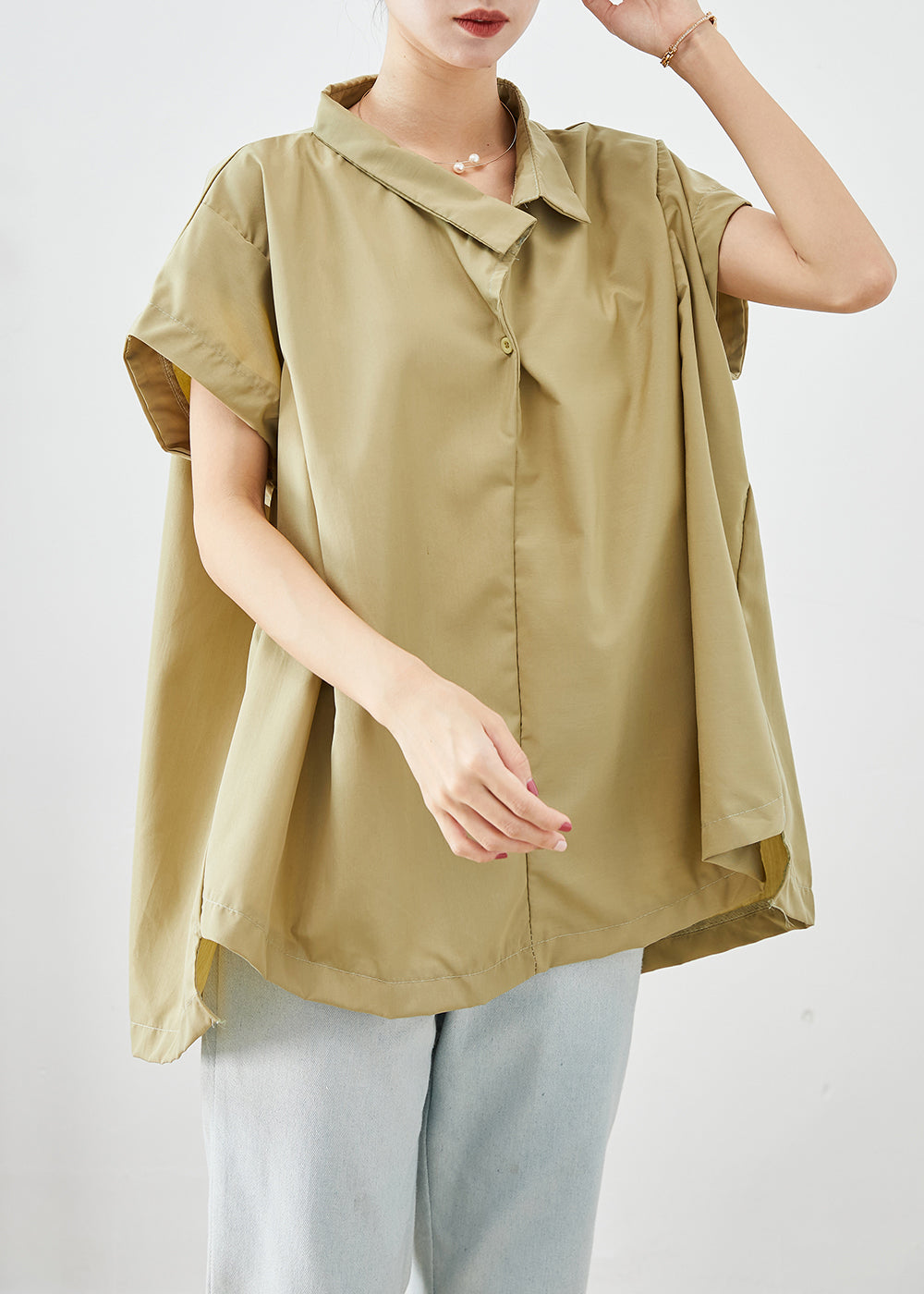 Loose Khaki Oversized Spandex Shirt Tops Summer