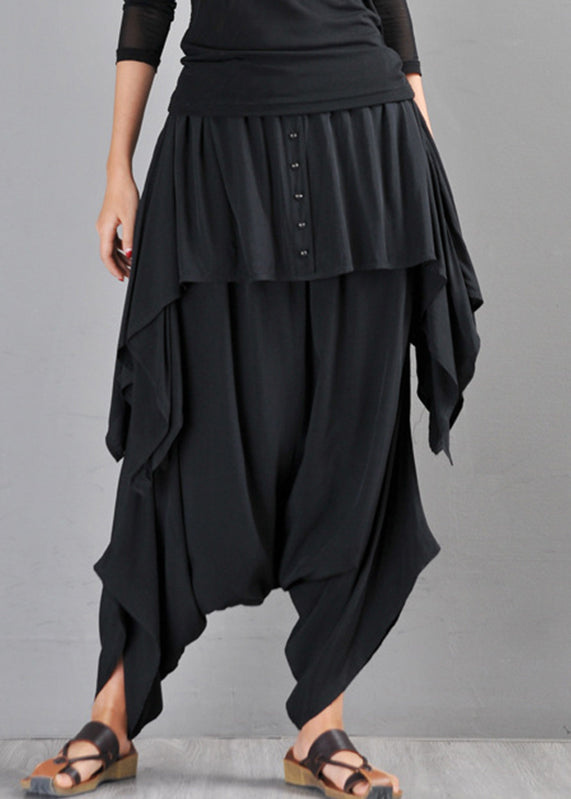 Black Pockets Elastic Waist Cotton Pants Skirt Summer
