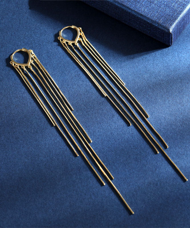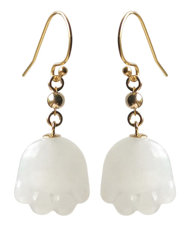Chic White 14K Gold Jade Gourd Gem Stone Tassel Drop Earrings