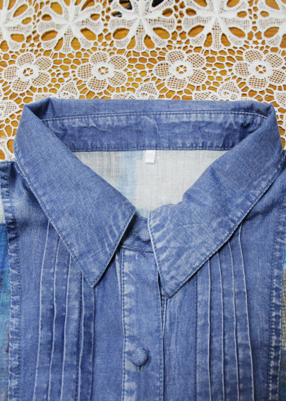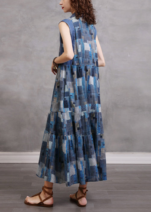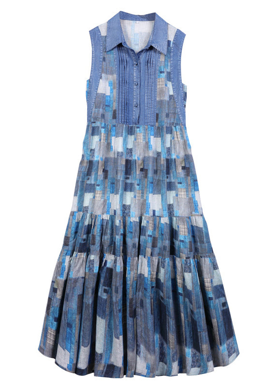 Natural Blue button Cinched Peter Pan Collar Plaid Patchwork Dress Sleeveless