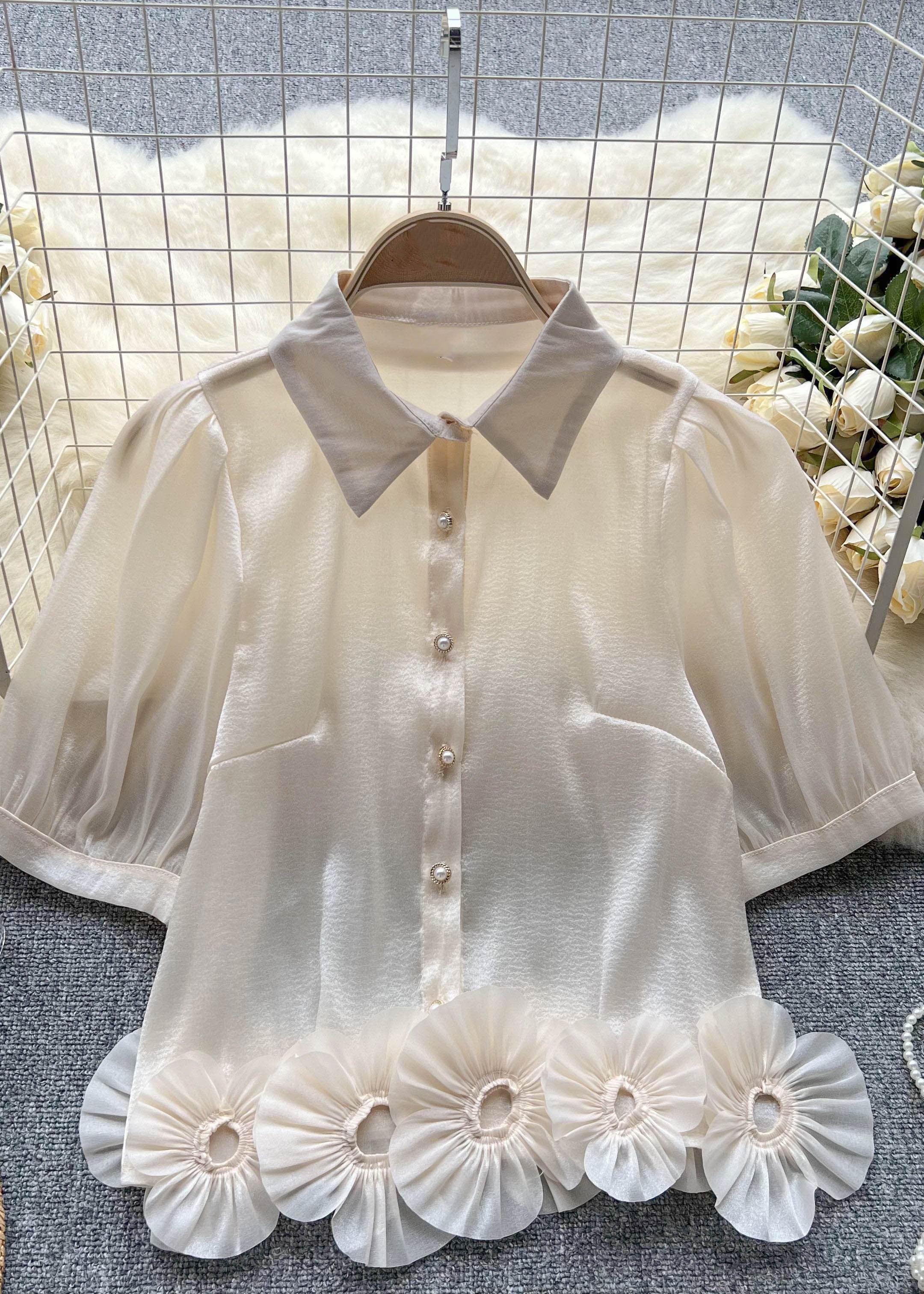 Rose Patchwork Cotton Shirts Slash Neck Wrinkled Half Sleeve