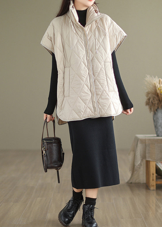 Beautiful Beige Oversized Drawstring Fine Cotton Filled Puffers Vests Winter