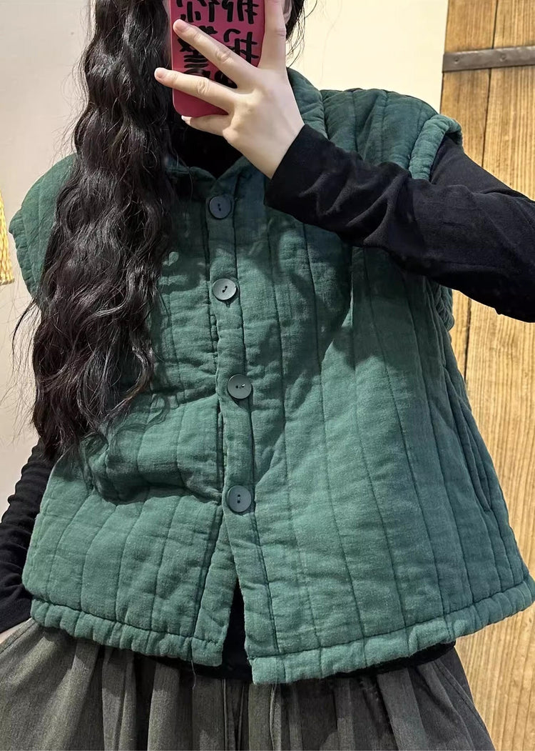 Casual Green Oversized Fine Cotton Filled Vests Winter