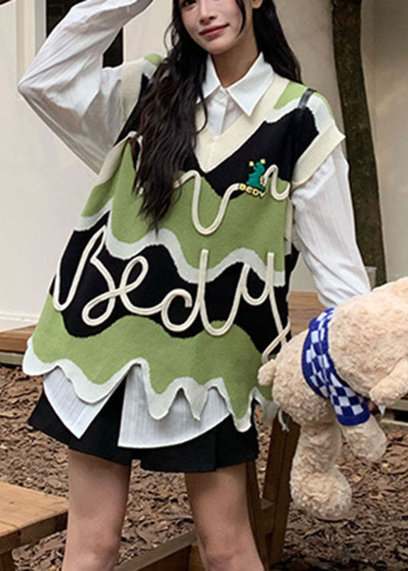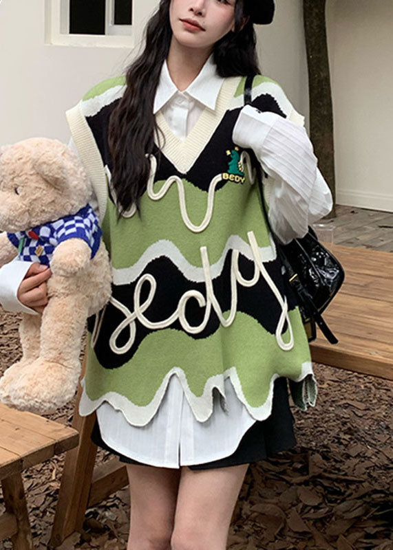 Classy Green V Neck Asymmetrical Thick Cotton Knit Waistcoat Sleeveless