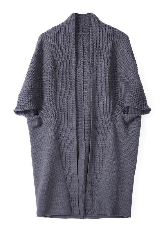 Fashion Dark Gray Bat Wing Sleeve Pockets Fall Knitwear Coat