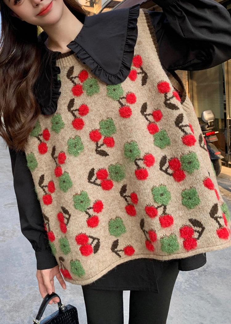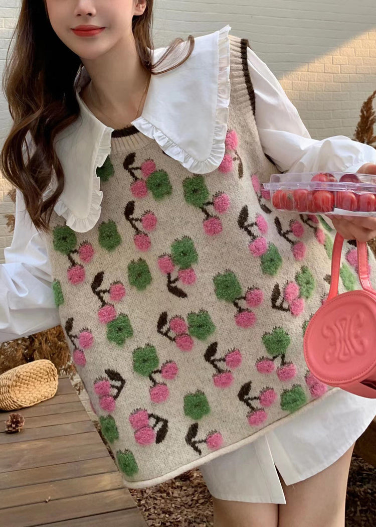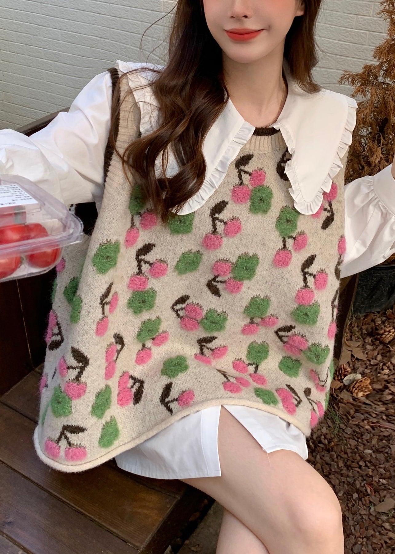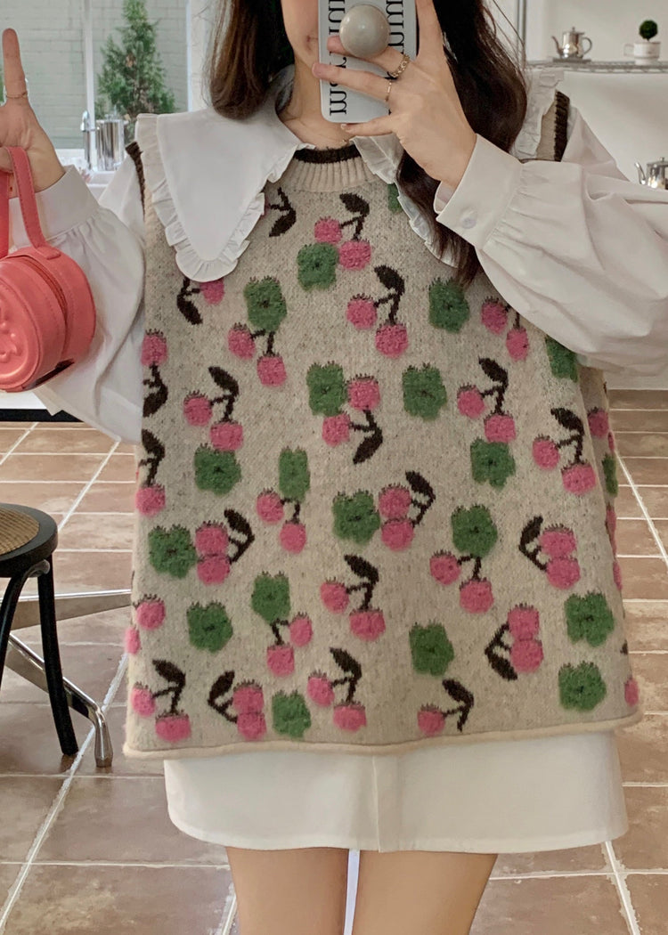 Fashion Pink O Neck Jacquard Patchwork Knit Vest Sleeveless
